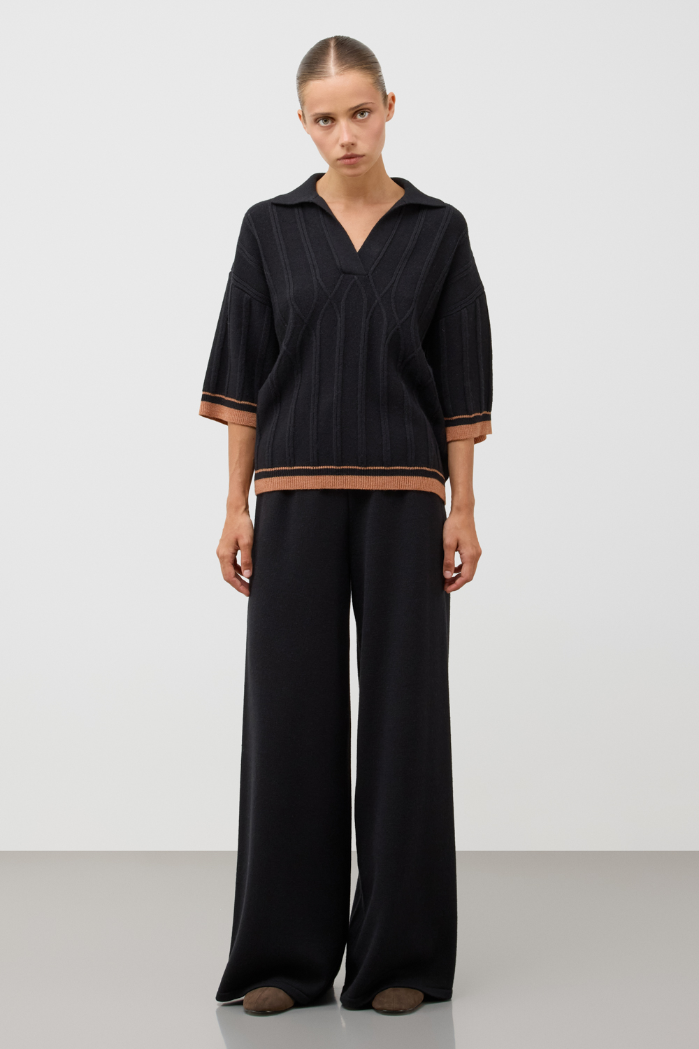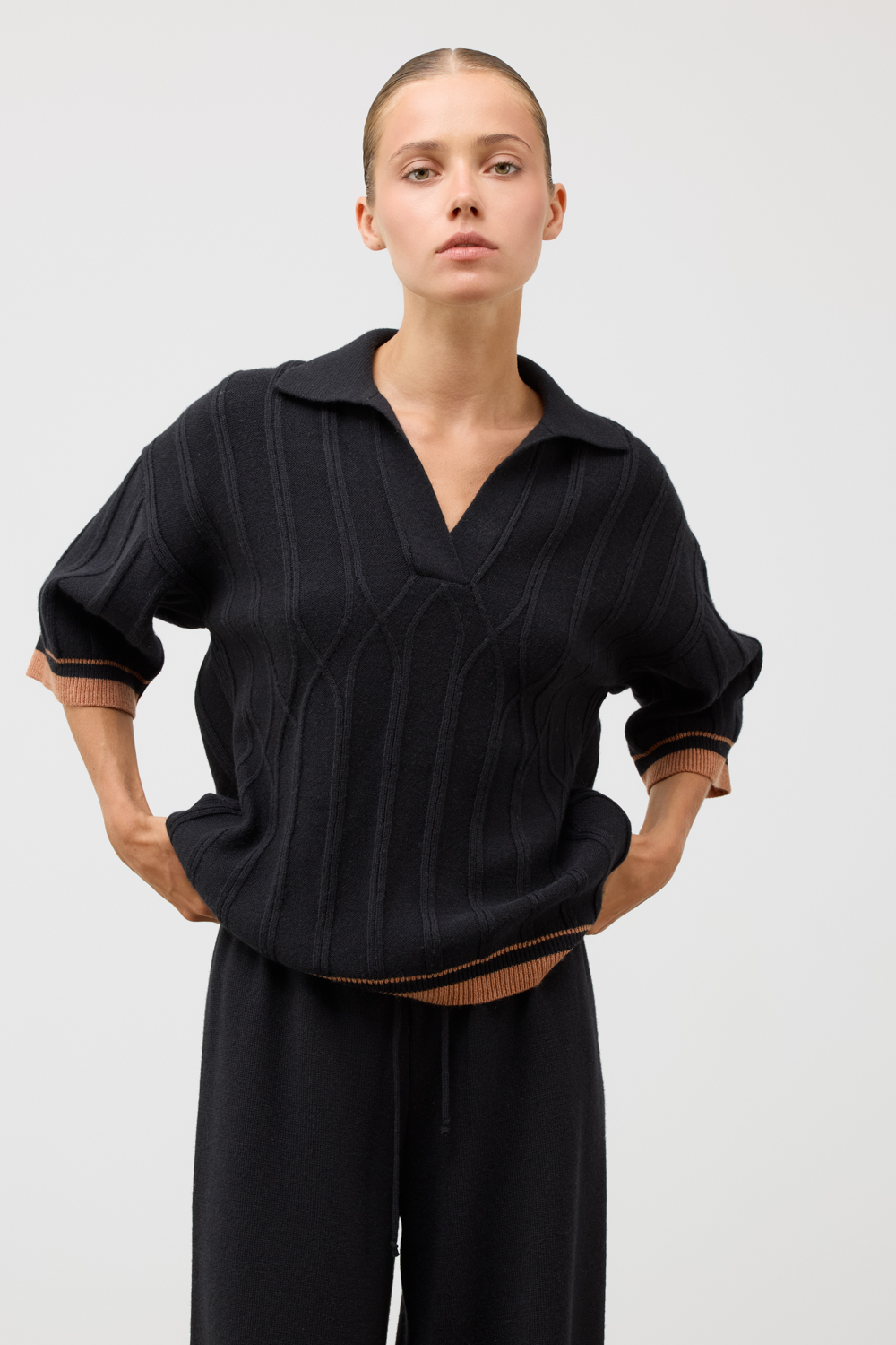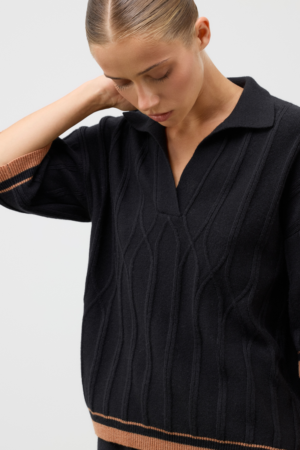 Джемер-поло из высококачественного австралийского мериноса. Спущенное плечо и свободный крой делают джемпер идеальным для повседневной носки.Состав является гипоаллергенным и способствует отличному сохранению формы изделия.