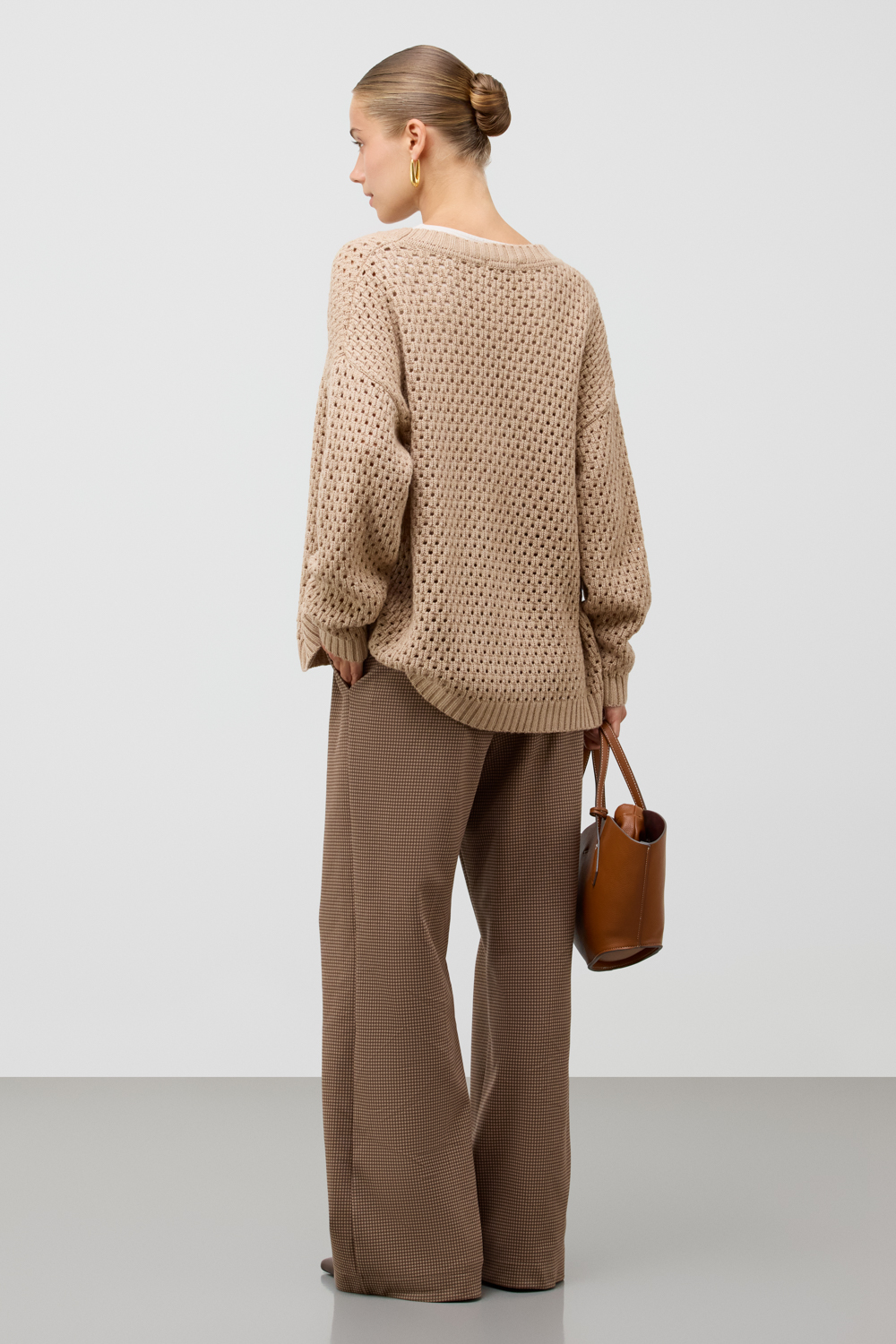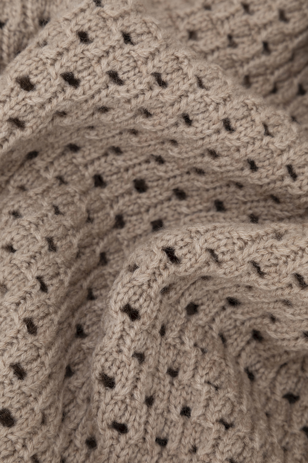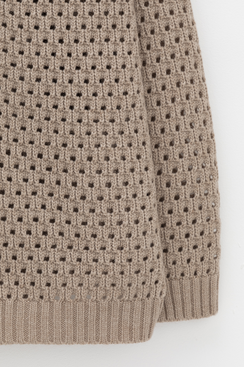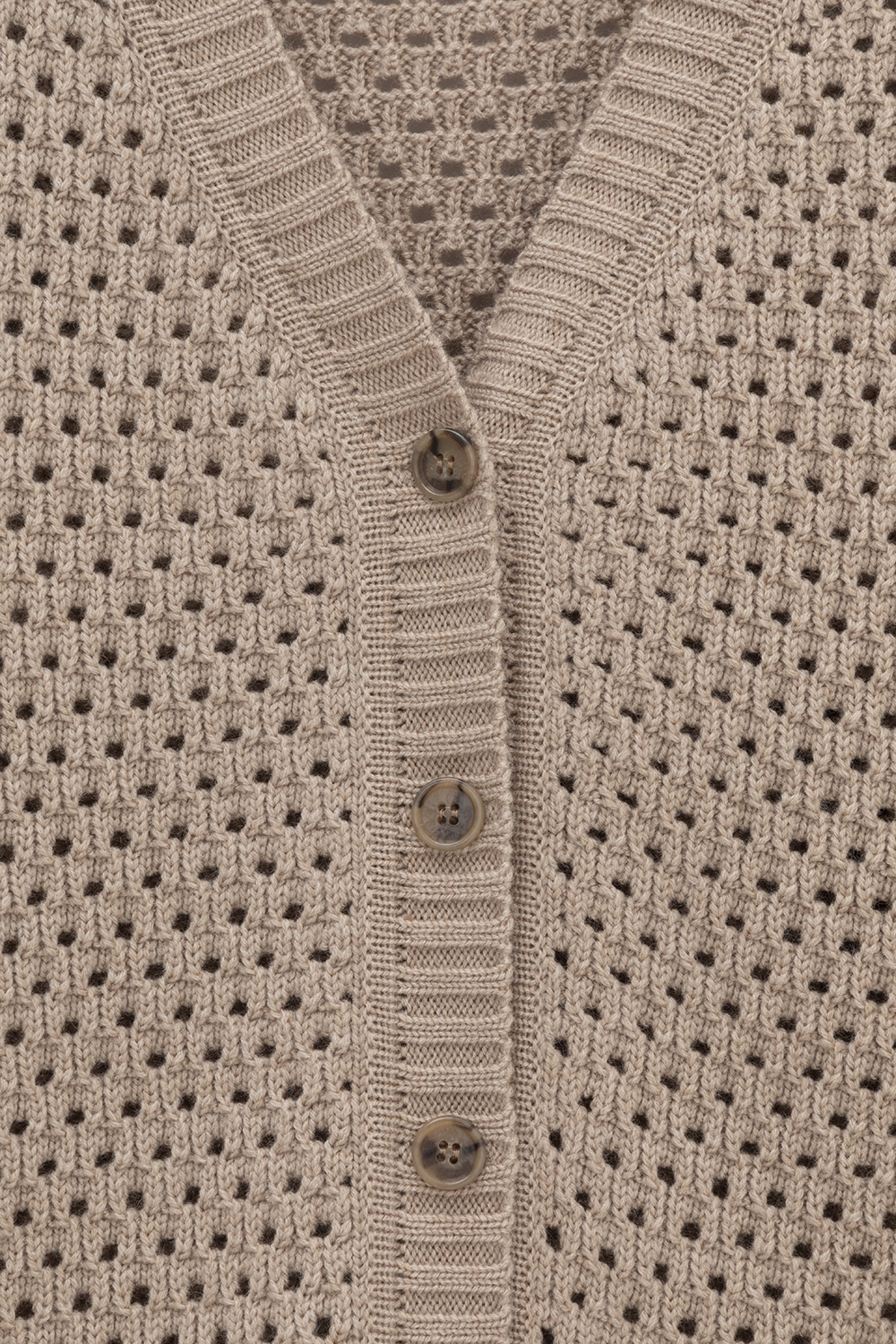 Мягкий  кардиган из ажурной вязки, выполненный из первоклассного материала, сочетает в себе шерсть и акрил, что создает атмосферу комфорта. Он приятно облегает тело, не вызывает дискомфорта и прекрасно сохраняет свою форму.