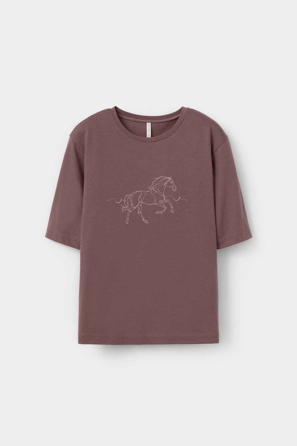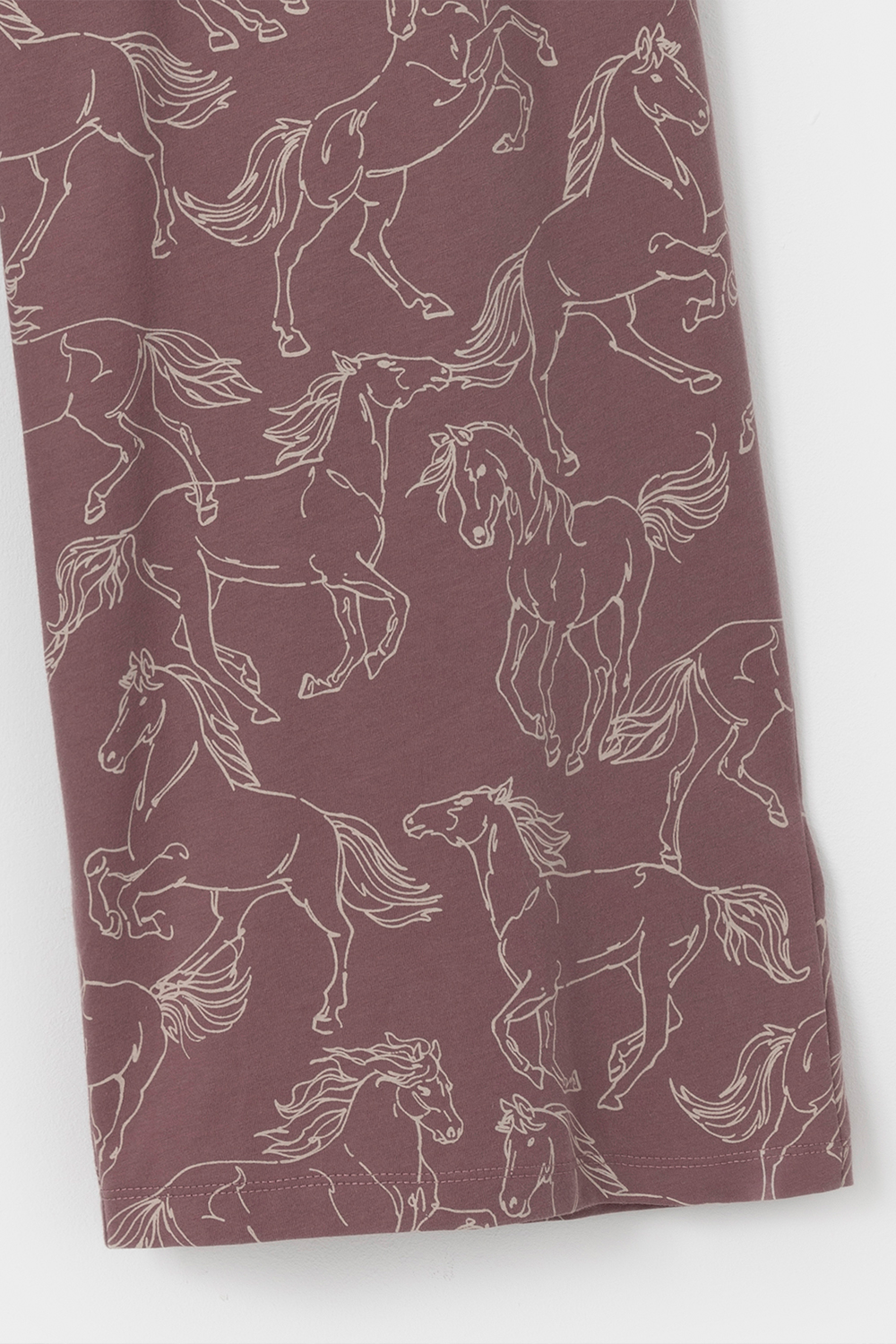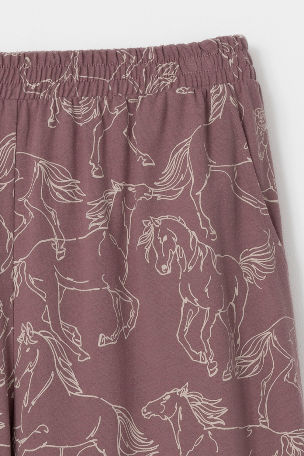 Комплект приглушенного оттенка выполнен из хлопка с нежнейшим модалом. Свободный крой футболки и мягкий пояс брюк обеспечивают легкость и свободу движений.