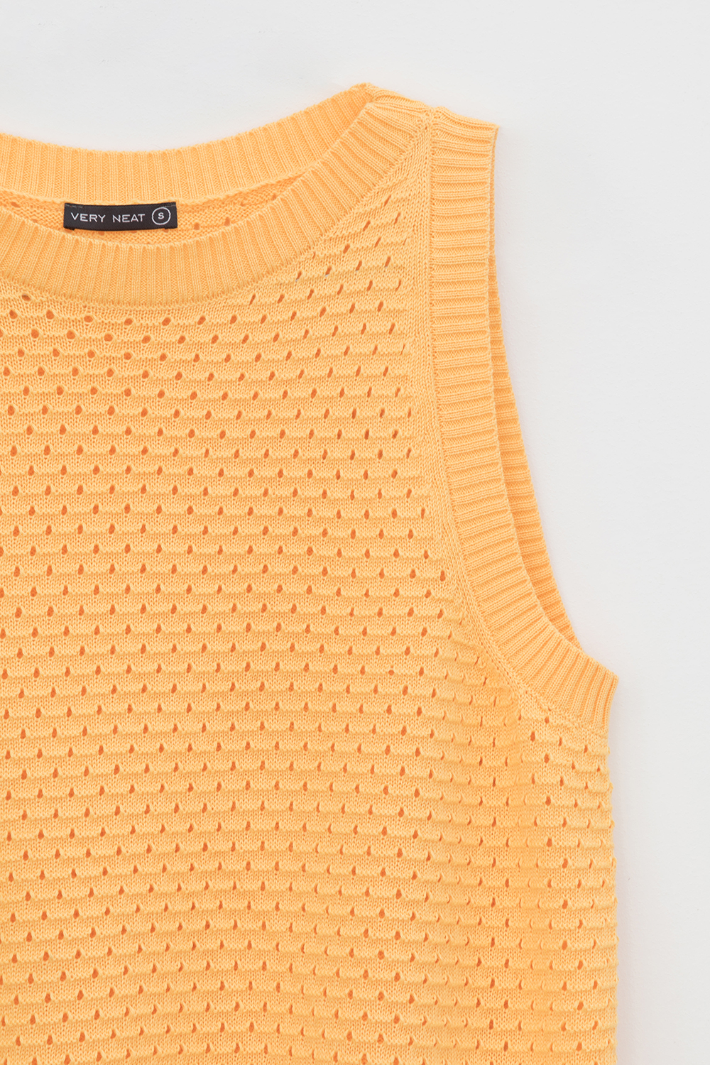 Укороченная вязаная ажурная майка. Состав 68% полиэстер, 32% вискоза.