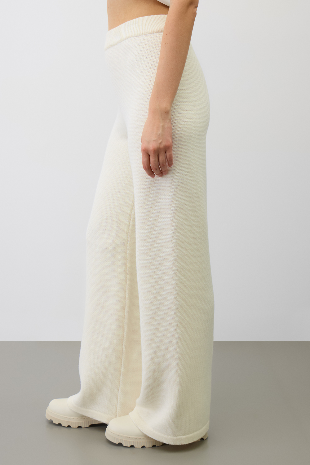Мягкие брюки из премиальной пряжи, созданные с использованием инновационной технологии смешанного волокна. Уникальная технология производства позволила сформировать воздушную жаккардовую структуру, которая выглядит невероятно изысканно. Деликатное переплетение натуральной шерсти с современным акриловым волокном дарит непревзойденные тактильные ощущения.