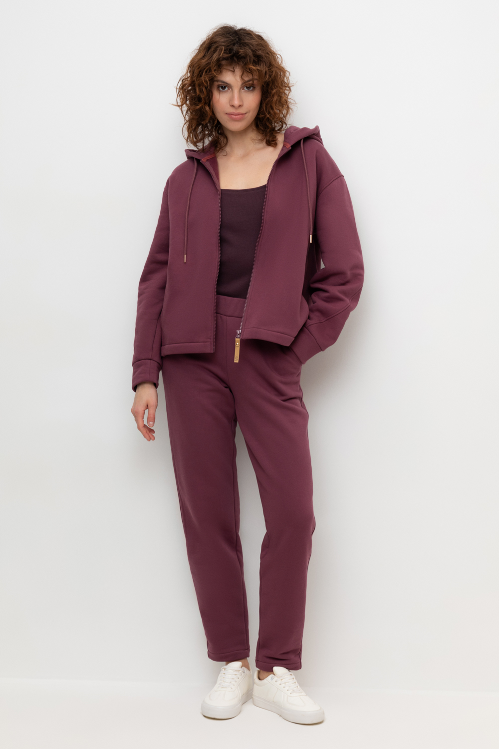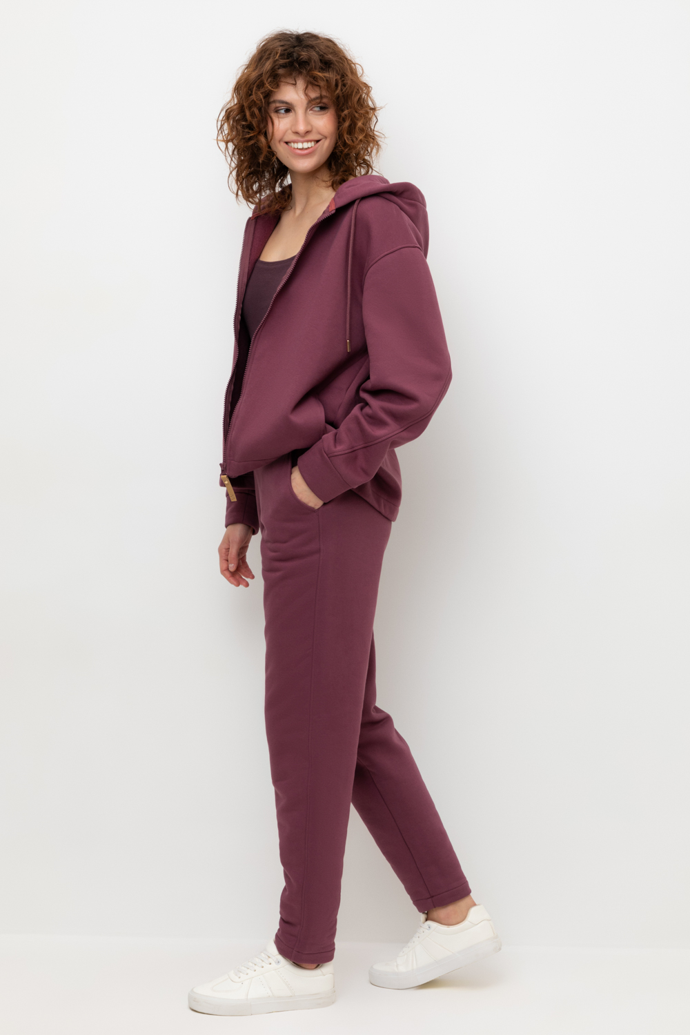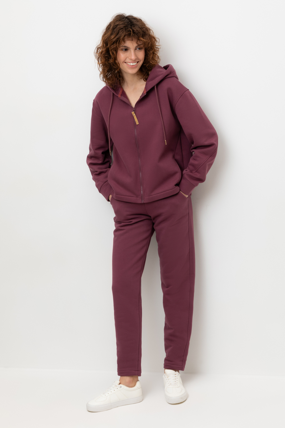 Брюки прямого кроя с боковыми карманами из футера трехнитки с начесом. Гладкий и плотный материал на основе хлопка сохраняет форму.