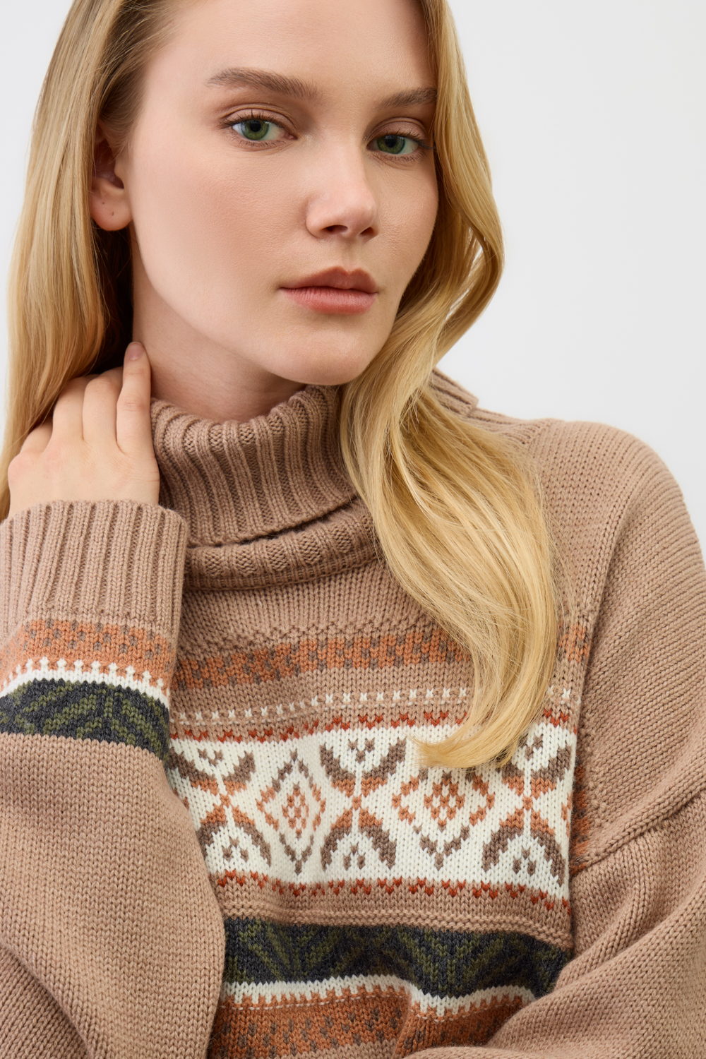 Мягкий джемпер в скандинавском стиле выполнен из пряжи премиум-класса. Идеальное сочетание шерсти и акрила обеспечивает комфорт, нежно облегает тело, является гипоаллергенным и прекрасно сохраняет свою форму.