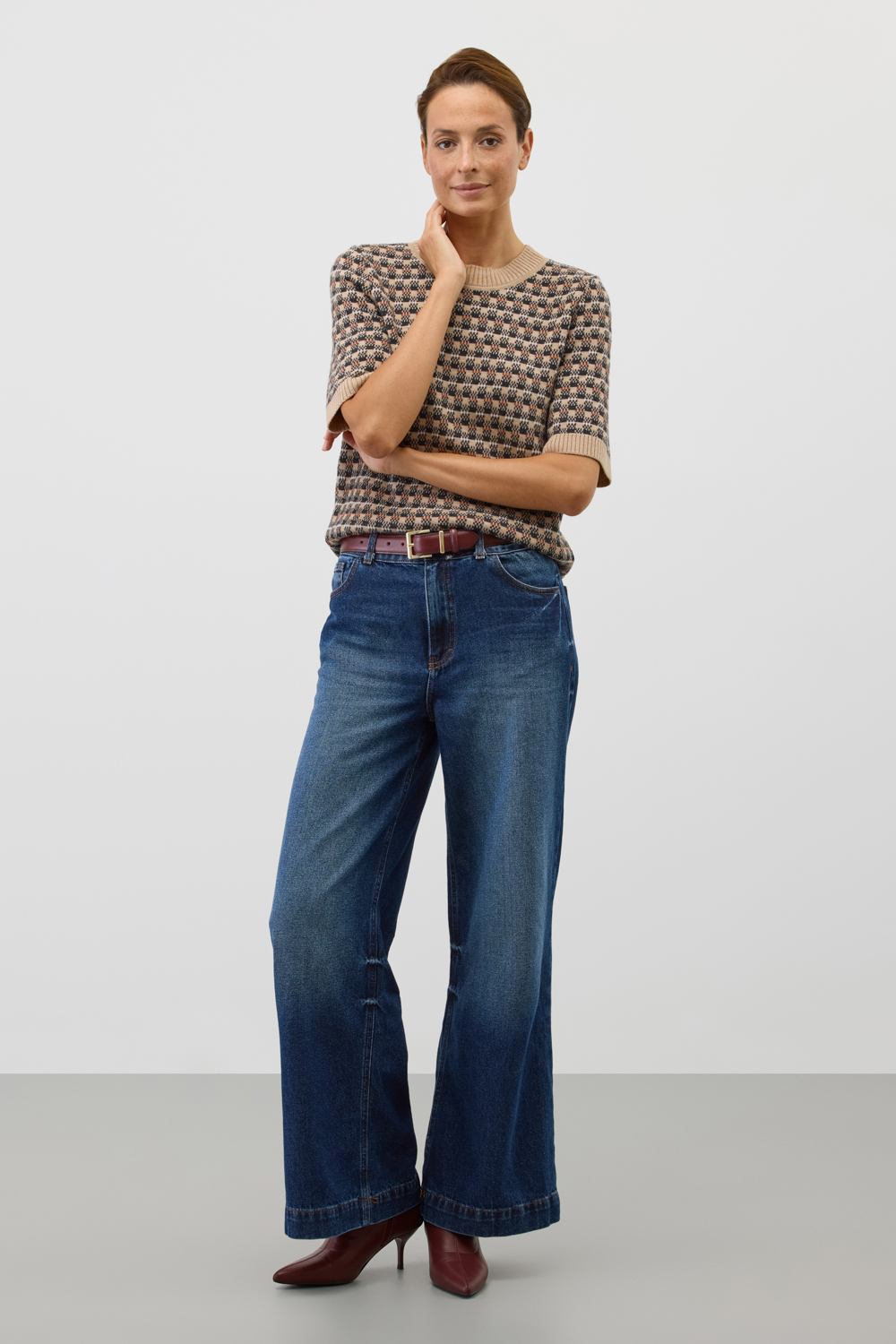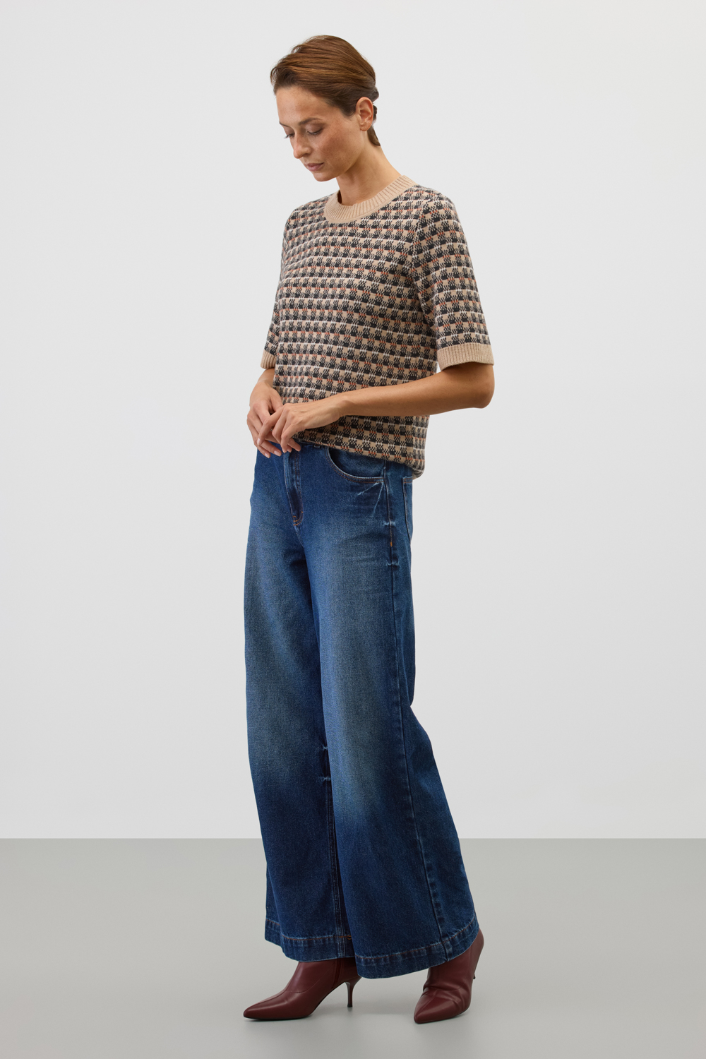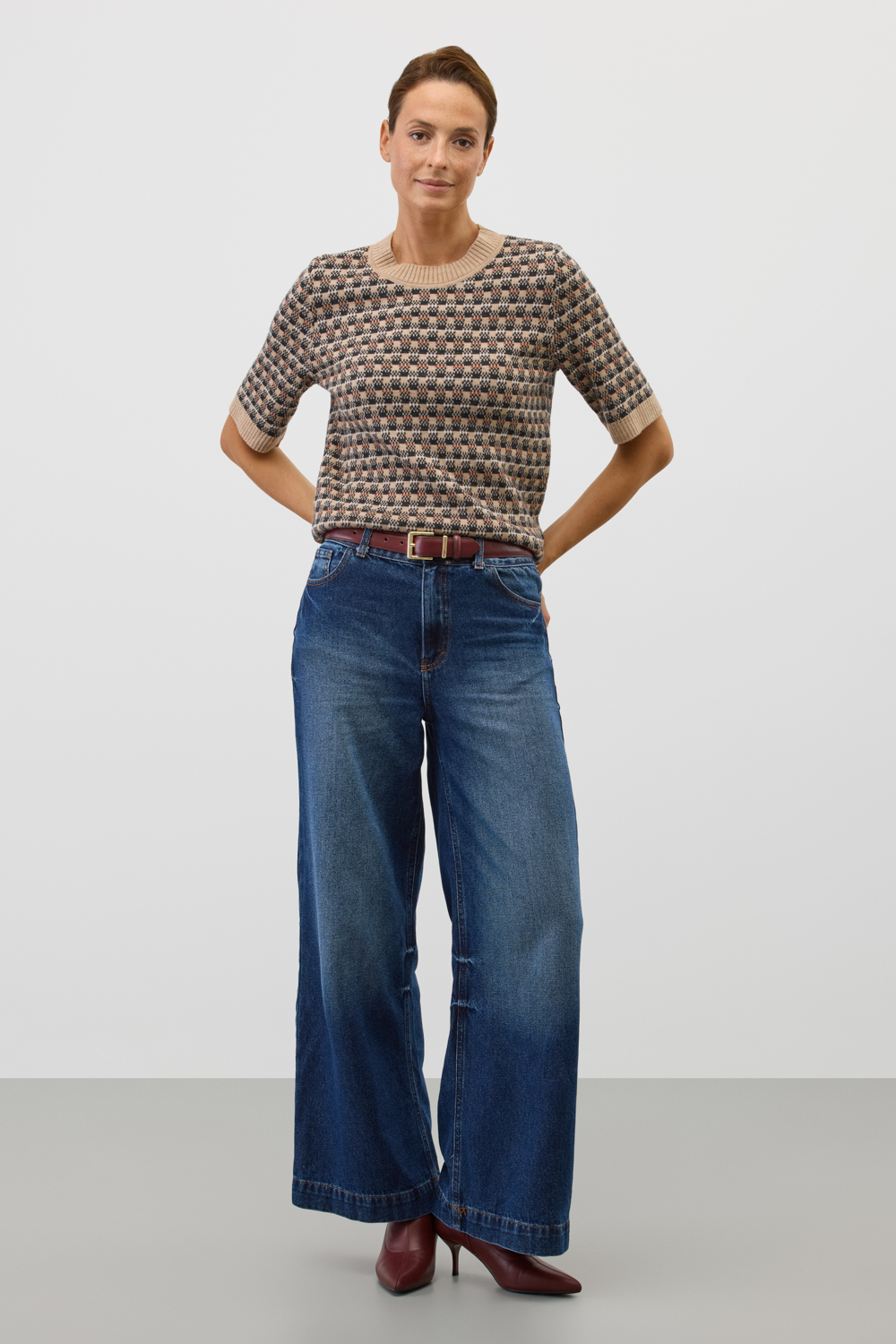 Джемпер с коротким рукавом в кантри-стиле, изготовленный из высококачественной пряжи с применением передовой технологии смешанных волокон. Изысканное сочетание шерсти и акрила создает непревзойденный комфорт: модель деликатно подчеркивает силуэт, обеспечивает нежное прикосновение к коже и сохраняет безупречный внешний вид.