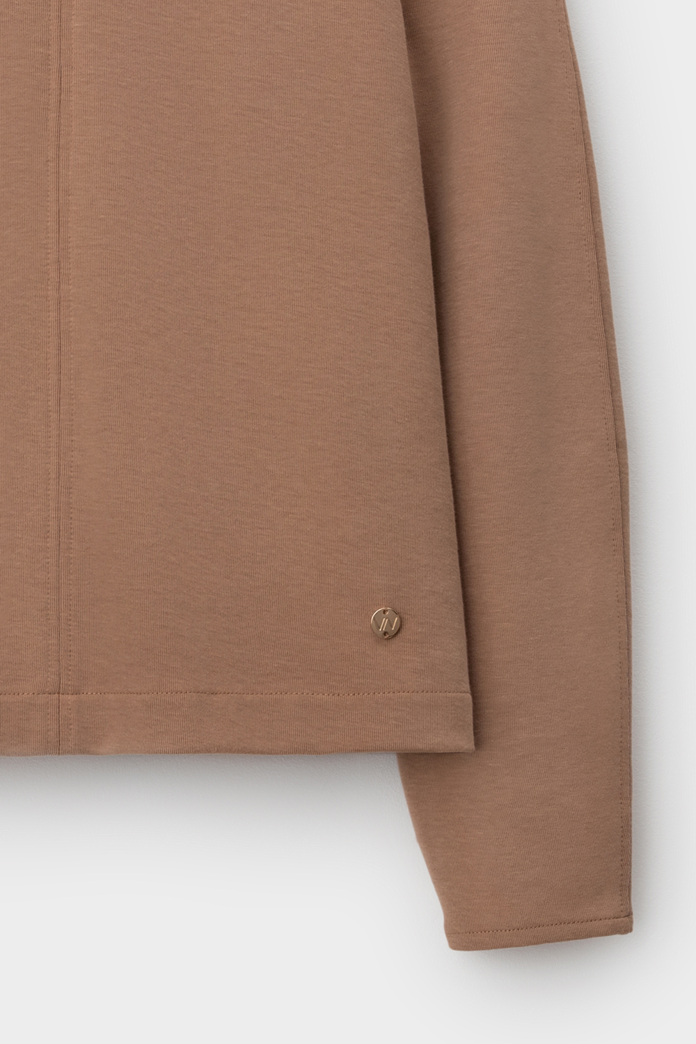 Модель имеет классический круглый вырез, что делает ее универсальной. Удобный прямой крой и рельефный шов, расположенный по центру, добавляют изделию оригинальности.