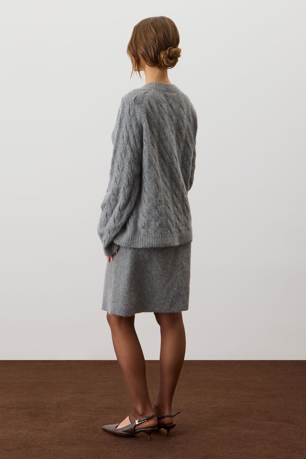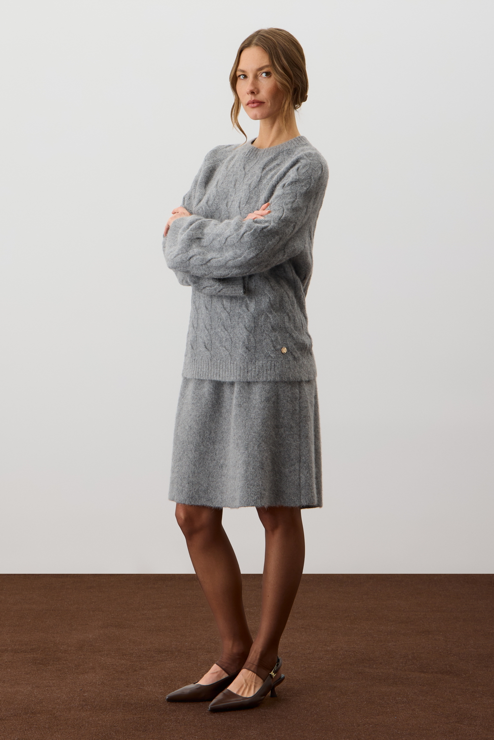 Нежный джемер из шерсти лисы. Широкий рукав и свободный крой делают джемпер идеальным для повседневной носки. Уникальной особенностью состава является то, что при сильных морозах ворс становится еще более пушистым, увеличивая теплоизоляцию.