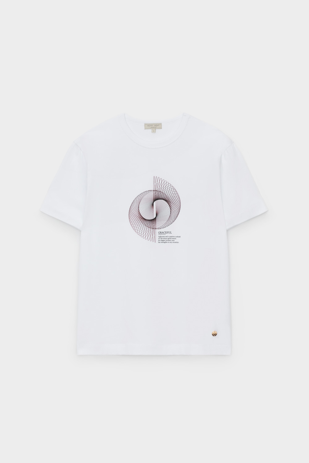 Футболка прямого силуэта из высококачественного гребенного хлопка с добавлением эластана. Мягкий на ощупь принт выполнен из водных красок, что обеспечивает устойчивость к многократным стиркам.