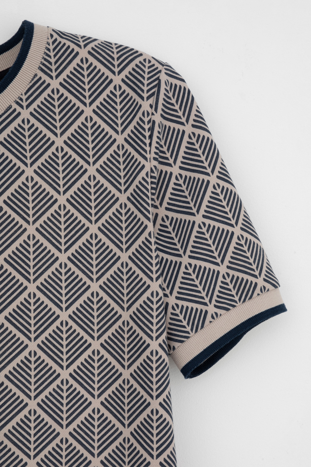 Футболка, изготовленная из 100% хлопка в переплетении пике. Дарит ощущение комфорта и легкости. Теплый сероватый оттенок и геометрический узор придают изделию спортивный и одновременно романтический стиль. Вязаный воротник и манжеты, выполненные с особым вниманием к деталям, придают изделию аккуратный и завершенный вид.