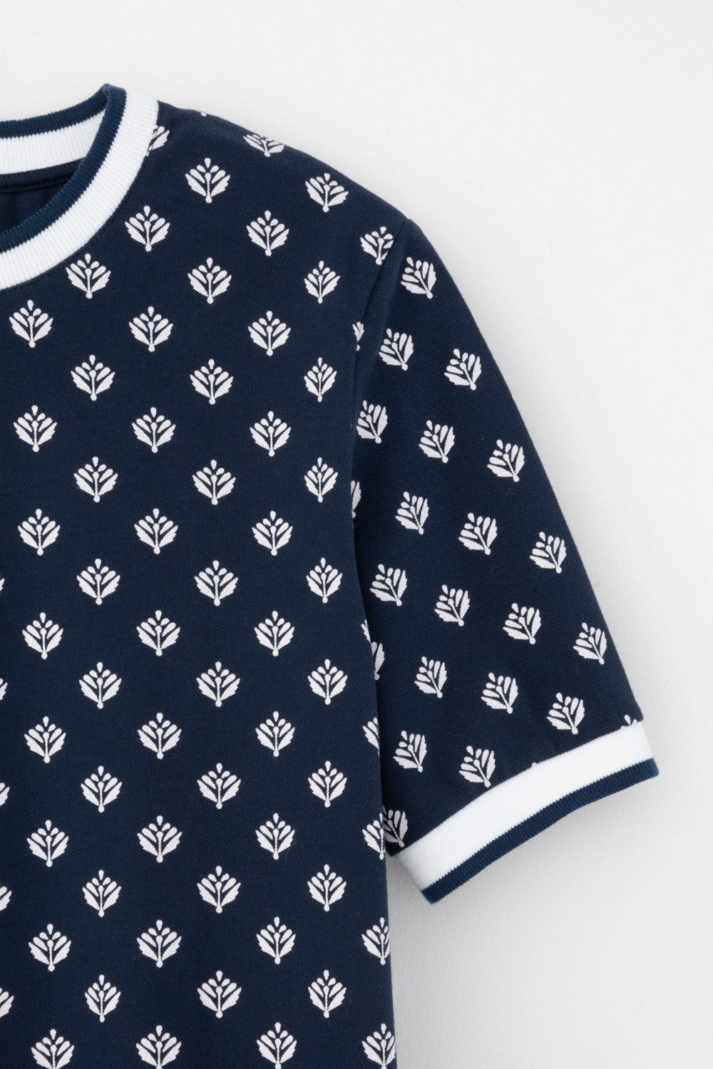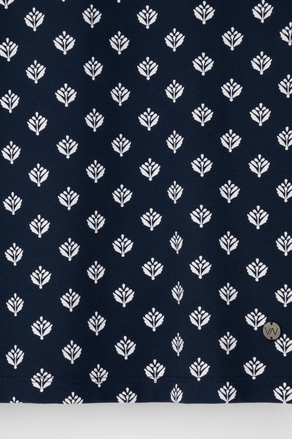 Футболка, изготовленная из 100% хлопка в переплетении пике. Дарит ощущение комфорта и легкости. Геометрический узор на глубоком синем цвете придает изделию романтический вид. Вязаный воротник и манжеты, выполненные с особым вниманием к деталям, придают изделию аккуратный и завершенный вид.