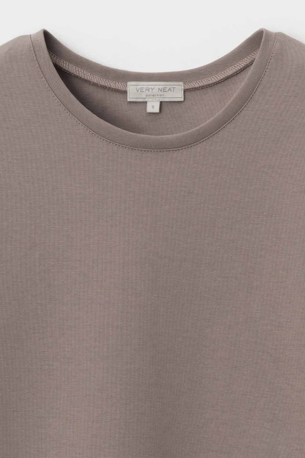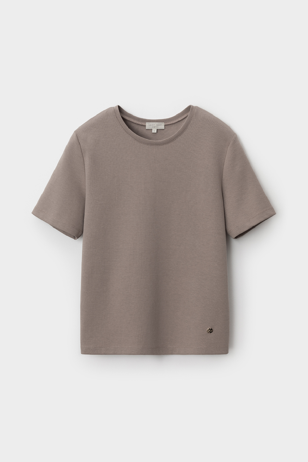 Базовая футболка из премиального трикотажа DOUBLE FACE.  Трикотаж прошел обработку силиконом, что придает ему легкость и шелковистость текстуры. Имеет классический круглый вырез и удобный прямой крой.