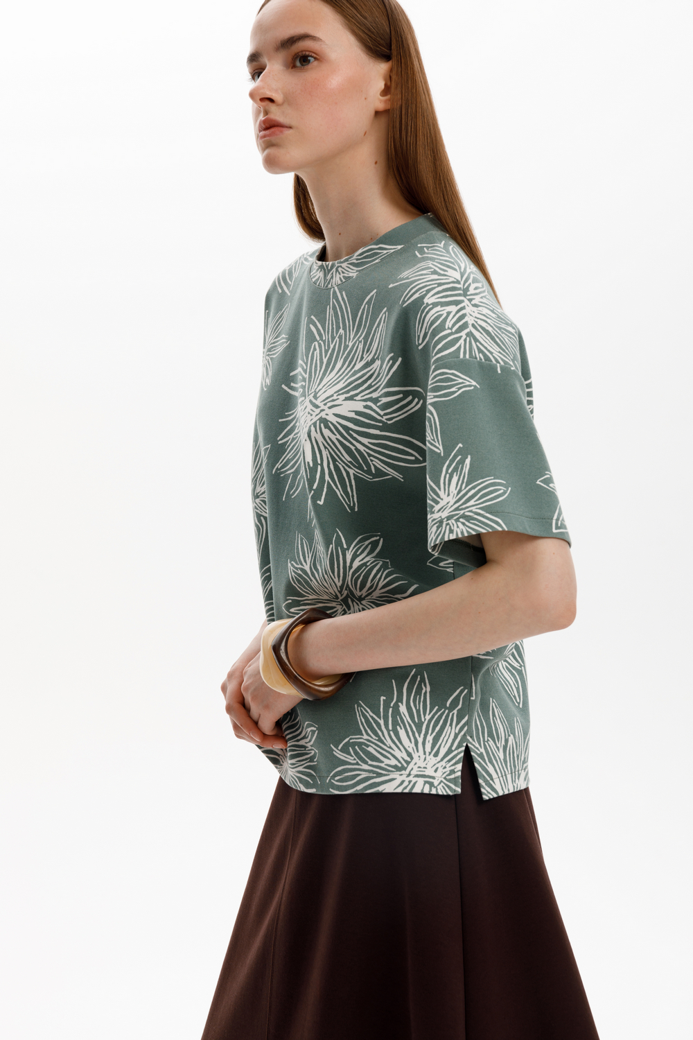 Блуза прямого силуэта со спущенным рукавом, изготовленная из премиального трикотажного полотна DOUBLE FACE. Мягкий на ощупь трикотаж выполнен из высококачественной гребенной пряжи.