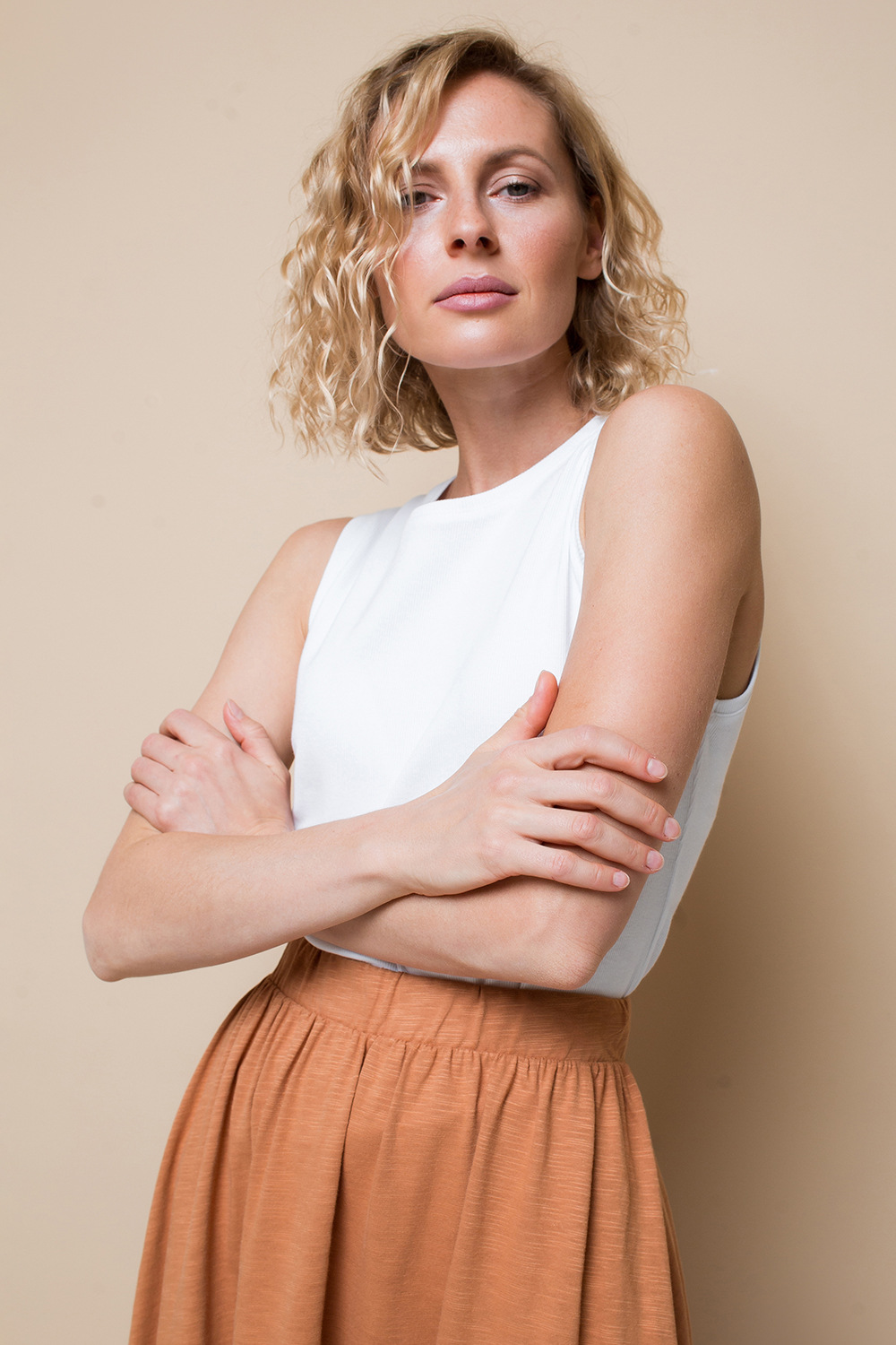 Классическим элементом гардероба является базовый топ в рубчик. Широкие бретели и высокий вырез делают изделие комфортным в носке и универсальным в повседневной жизни.