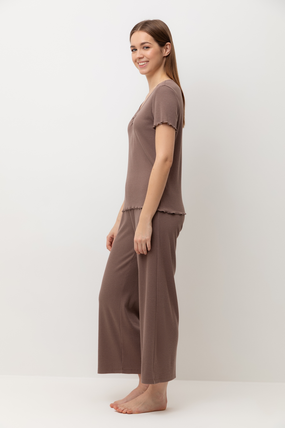 Комплект из нежного хлопкового трикотажа в рубчик. Мягкий и эластичный на ощупь трикотаж обеспечивает легкость и приятное облегание.
