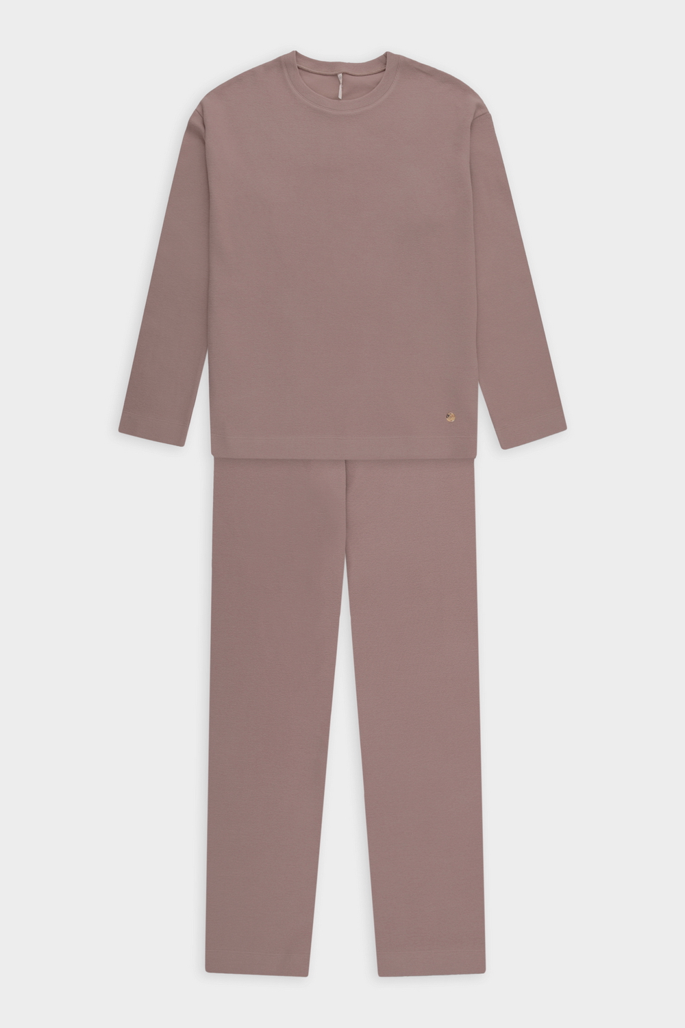 Комплект из 100% хлопка. Специальная обработка полотна пич эффектом придает мягкость, бархатистость и легкий ворс, а брюкии свободный крой обеспечивают легкость и свободу движений.