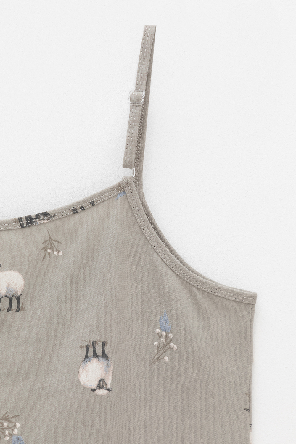 Комплект из высококачественного гребенного хлопка выполнен с вниманием к деталям. Регулируемые бретели позволяют подстроить их под ваши индивидуальные предпочтения, а комфортный пояс шорт обеспечивает свободу движений.