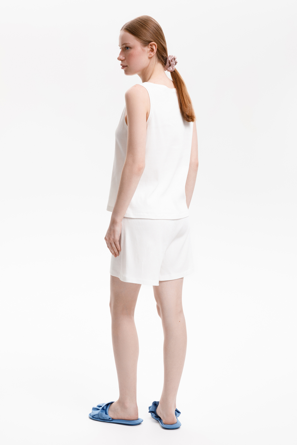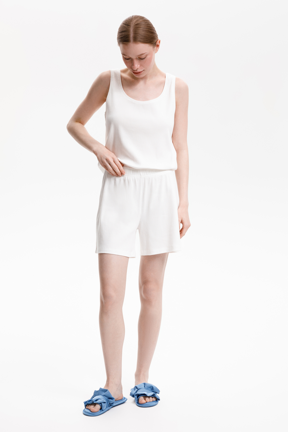 Комплект топ и шорты из эластичного полотна в рубчик