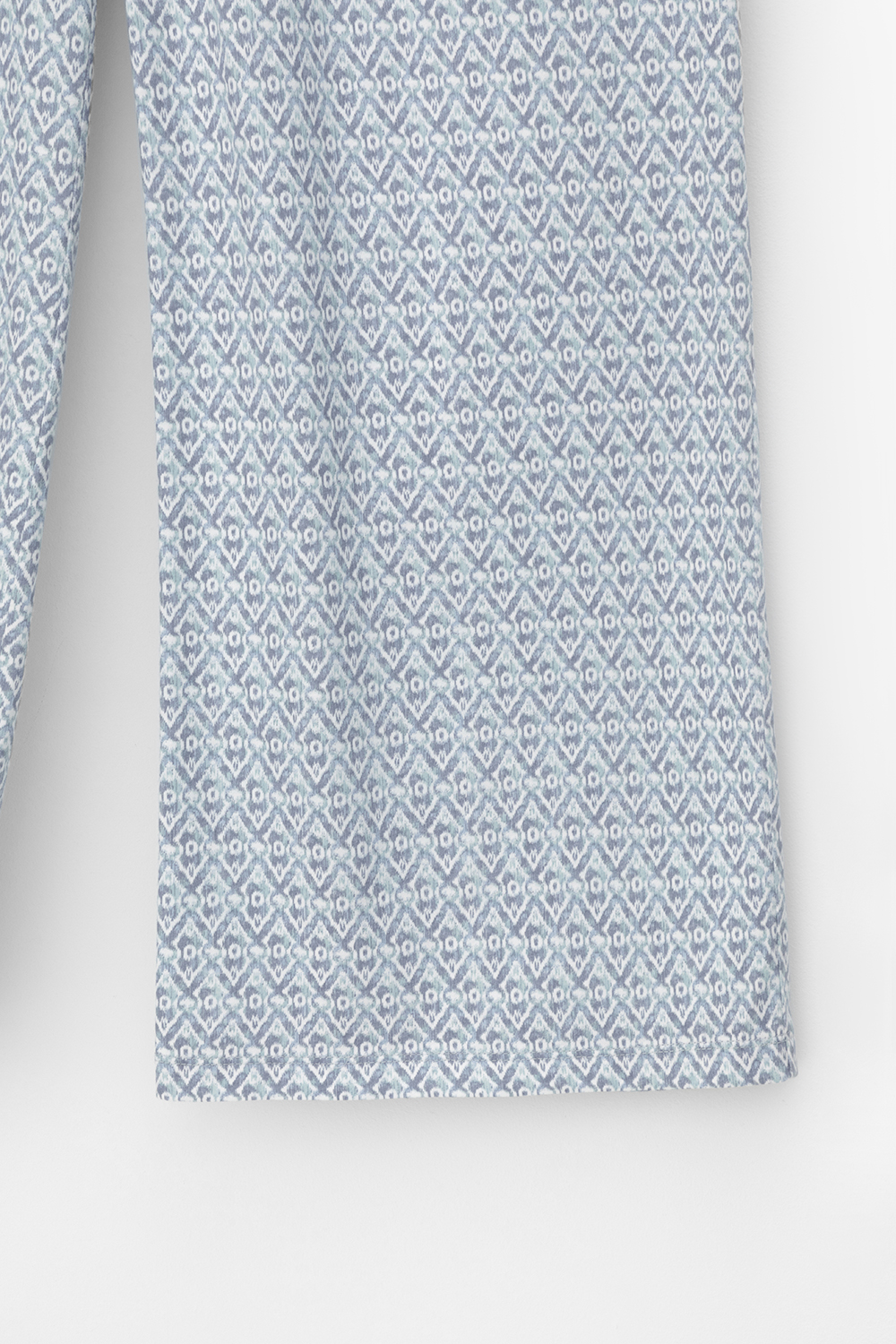 Комплект из высококачественного гребенного хлопка. Мягкий на ощупь принт на футболке выполнен на основе водных красок, что обеспечивает устойчивость к многократным стиркам. Брюки длины 7/8 с удобным поясом на резинке и практичными карманами добавляют практичности и удобства.