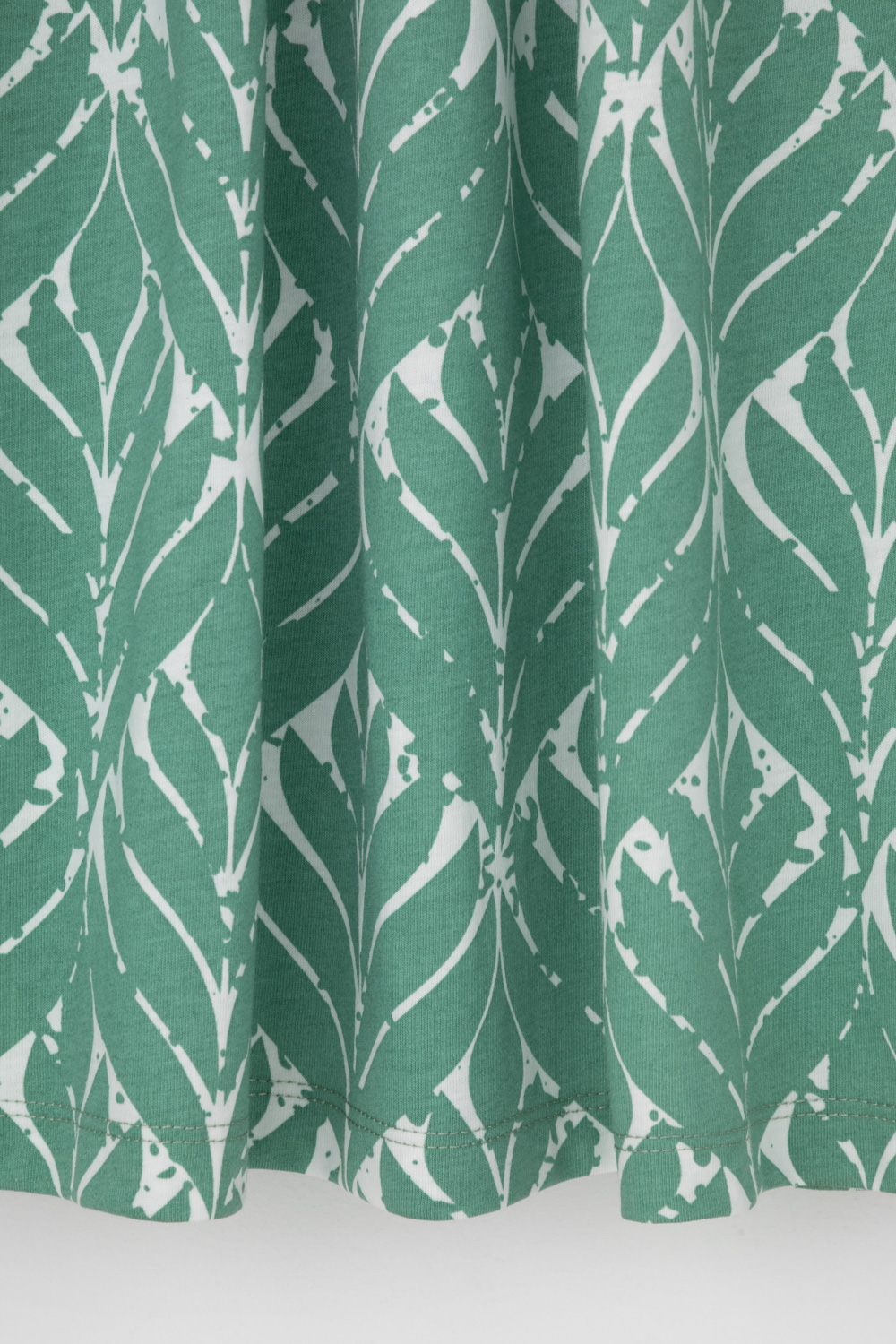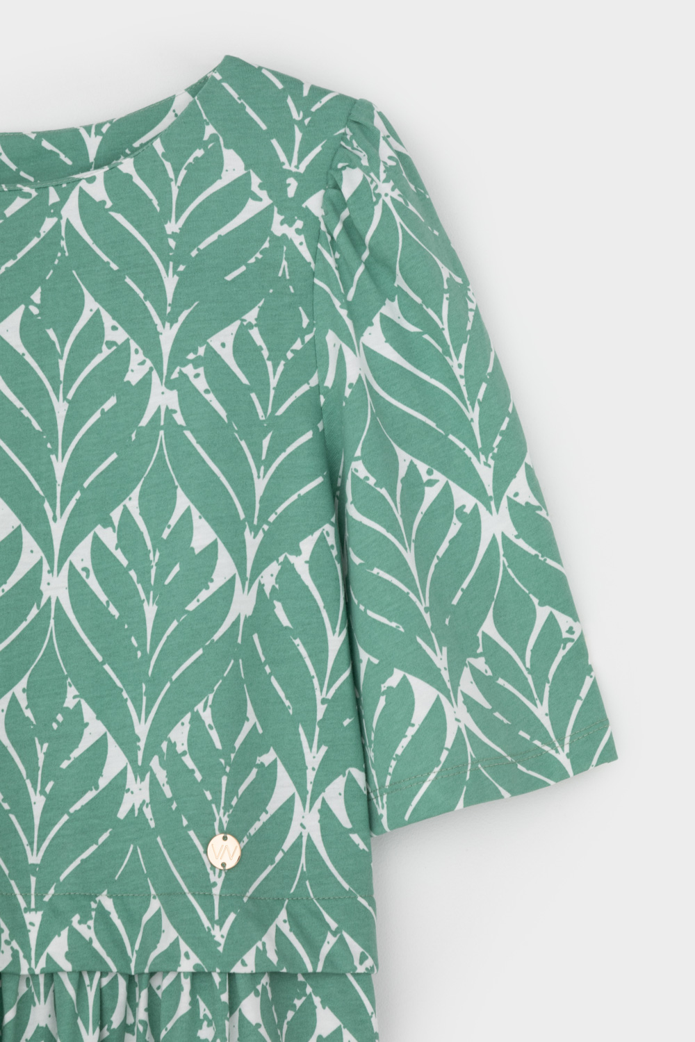 Легкое трикотажное платье из высококачественного гребенного хлопка, который обеспечивает комфорт в жаркую погоду. Свободу движения придает силуэт, сборка по рукаву и поясу романтичности, а наличие боковых карманов - функциональности.