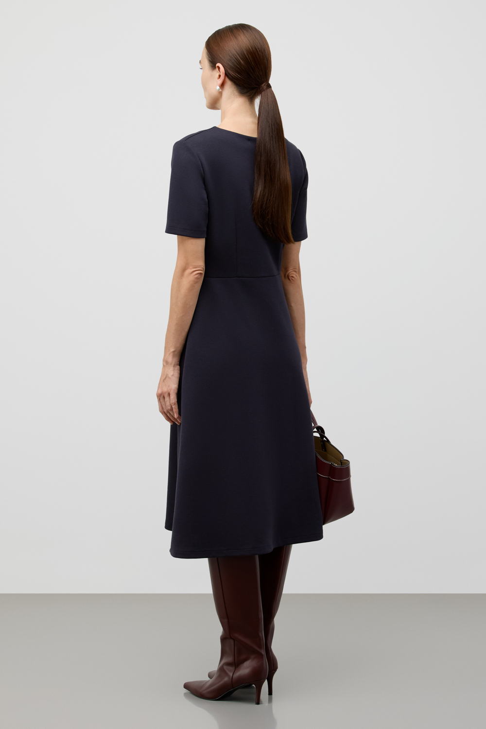Современный фасон и лаконичный дизайн делают платье универсальным решением для различных мероприятий — от деловых встреч до непринужденных прогулок по городу.