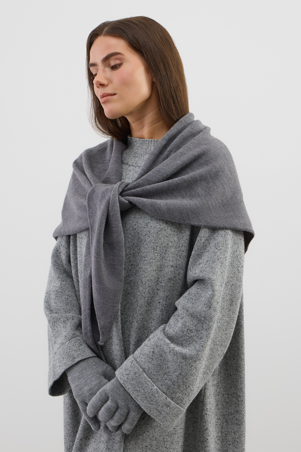 Мягкая вязаная косынка из шерсти и акрила станет стильной заменой шапке. Шерсть в составе сохраняет тепло, а волокна акрила придают изделию мягкость и объем.