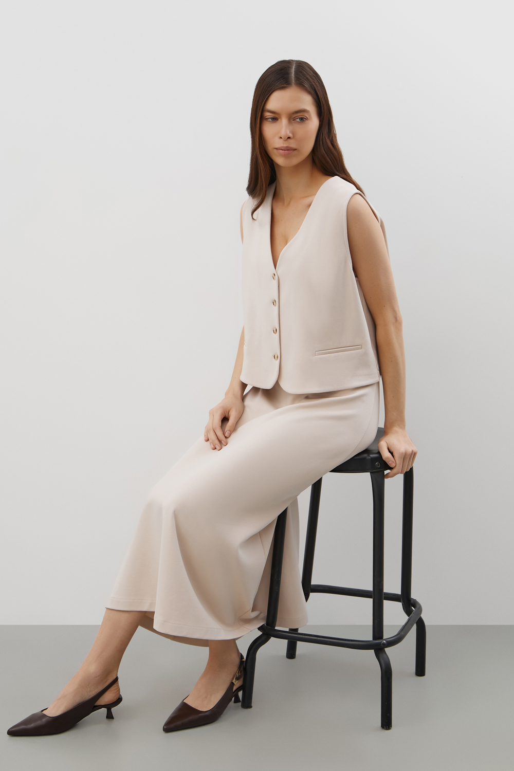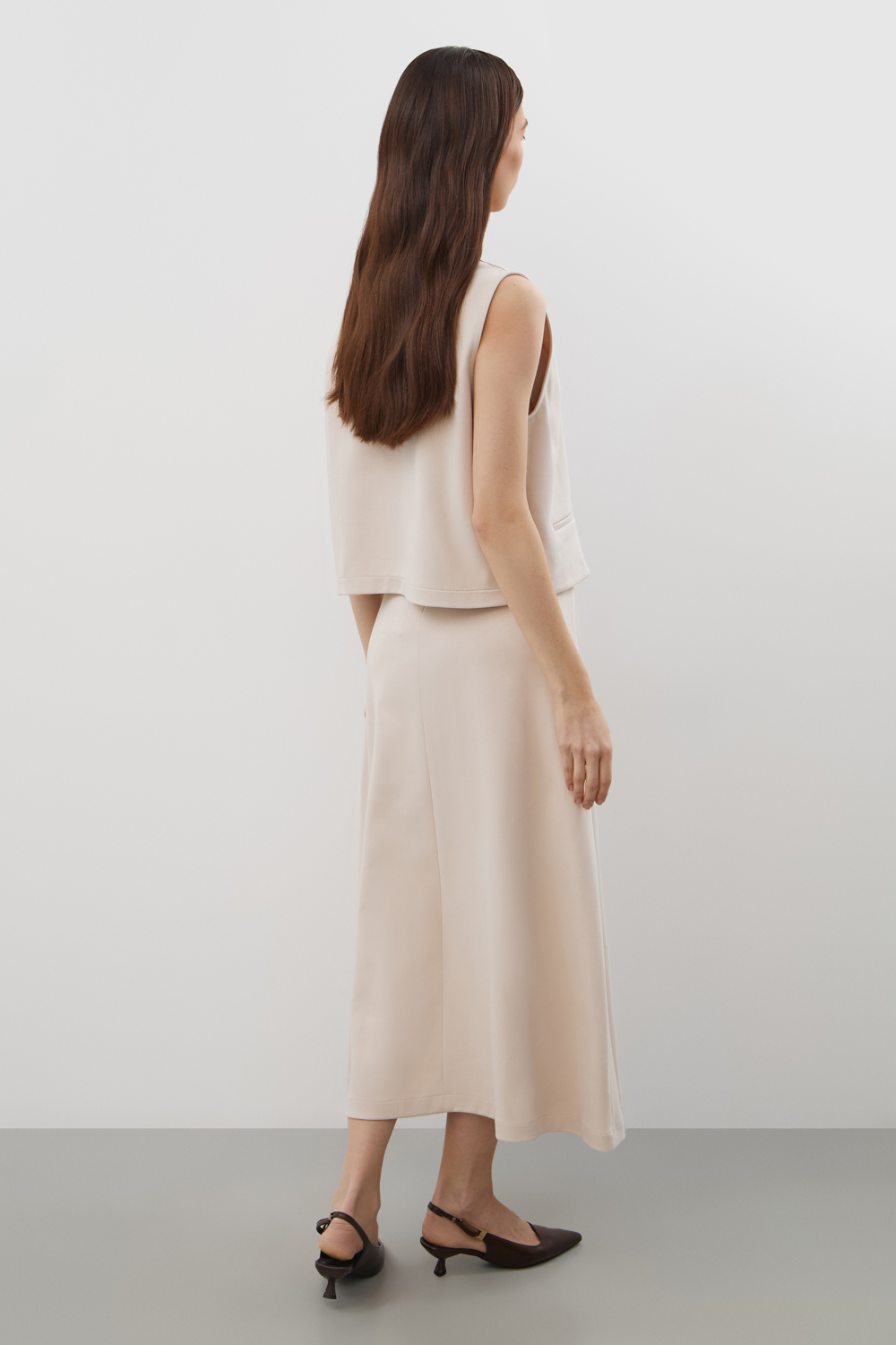 Юбка из  премиального  трикотажного полотна мягко расширяется к низу, создавая изящный силуэт и подчёркивая талию.