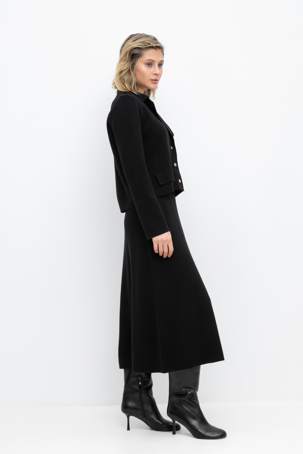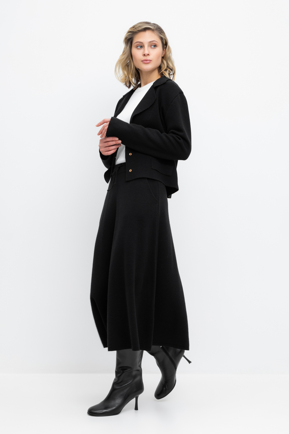 Вязаная юбка из премиальной пряжи, созданная с использованием инновационной технологии смешанного волокна. Деликатное сочетание шерсти и акрила обеспечивает непревзойденное ощущение мягкости, эластичность посадки и гарантированный комфорт при носке. Модель идеально адаптирована к телу, не создает дискомфорта и сохраняет безупречную форму.