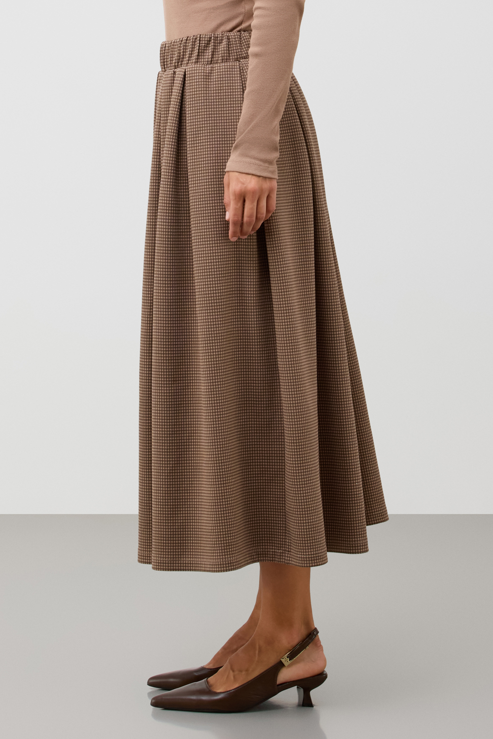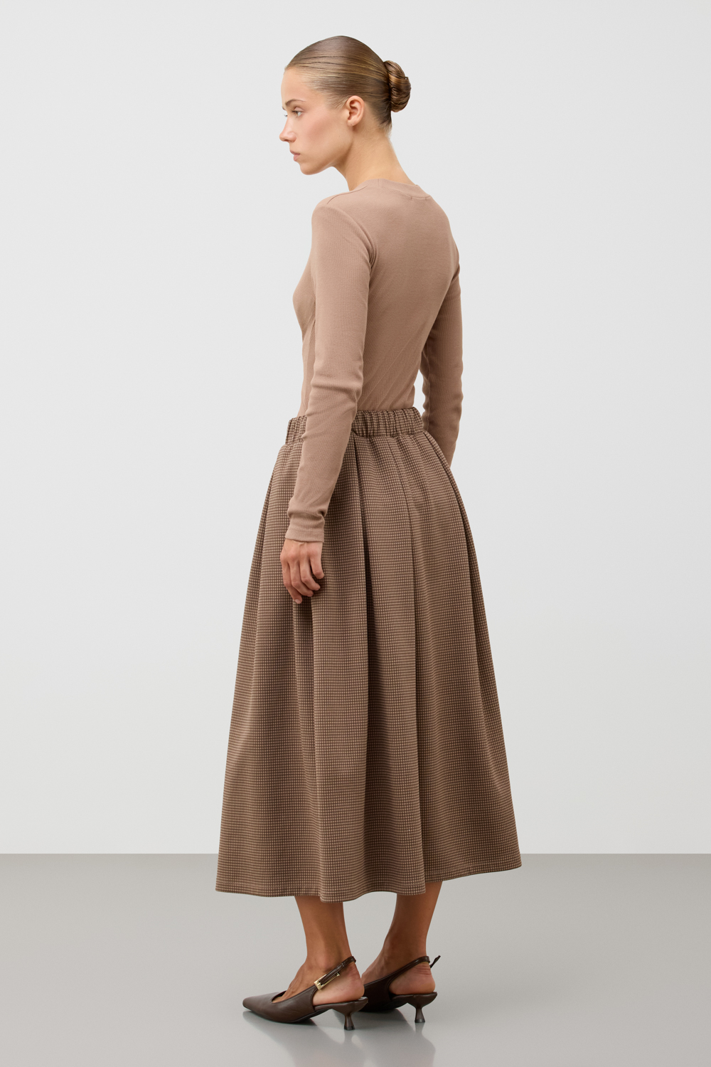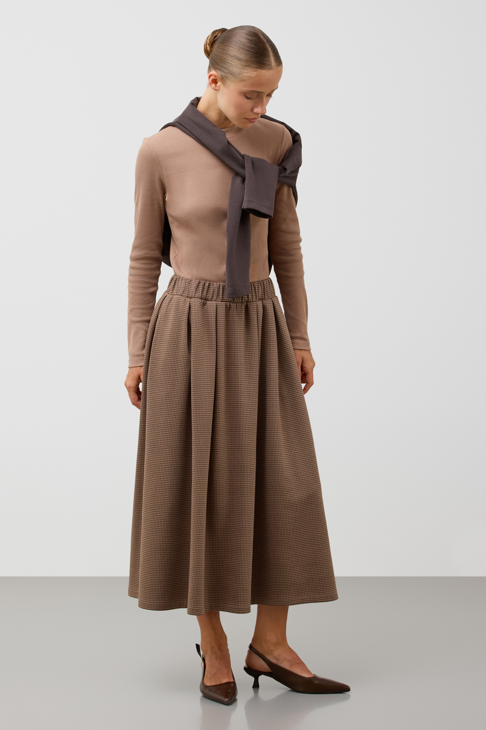 Юбка в складку выполнена из инновационного высококачественного трикотажного полотна DOUBLE FACE, который сочетает в себе мягкость натуральных волокон и долговечность современных технологий. Мягкая резинка на поясе обеспечивает комфортную посадку без ощущения давления и дискомфорта.