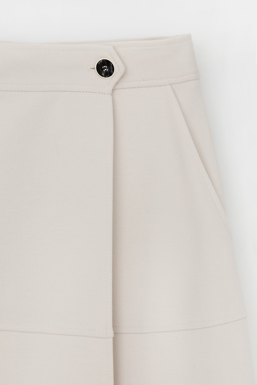 Юбка с акцентной линией талии подчеркивает утонченный силуэт. Длина миди добавляет образу сдержанной классики, делая изделие универсальным для любого случая, а имитации запаха не создает лишний объём. Юбка изготовлена из премиального трикотажа DOUBLE FACE.