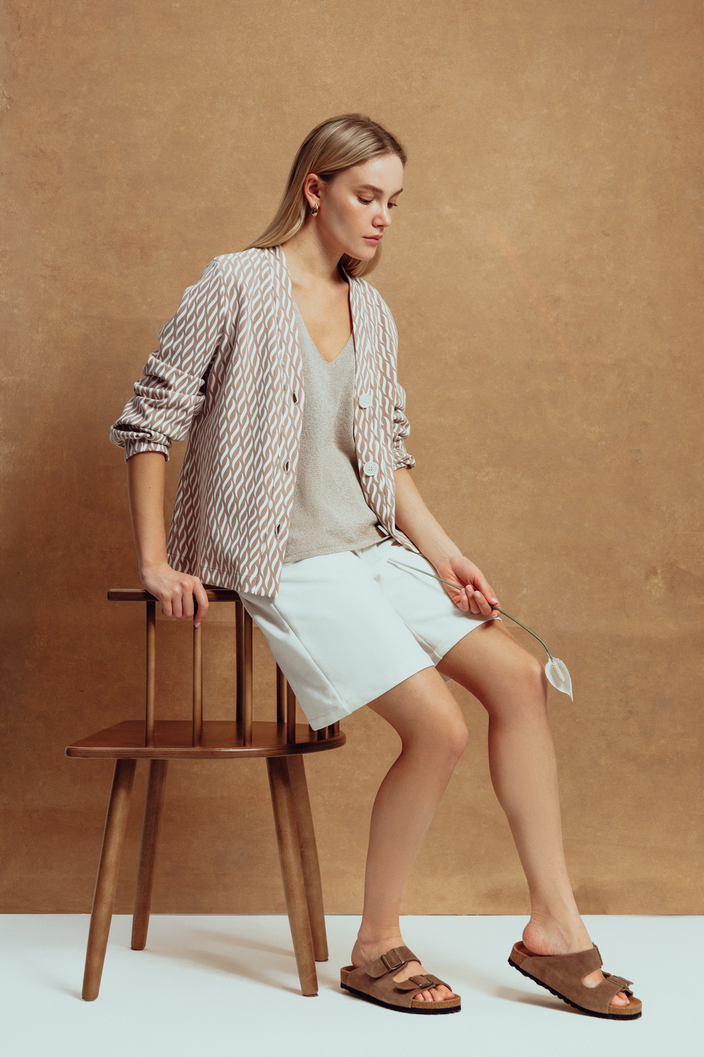 Жакет прилегающего силуэта из премиального трикотажа DOUBLE FACE. За счет фактуры переплетения и специальных обработок сохраняет силуэт и форму. Хлопок в составе добавляет комфорта при носке. В сочетании с брюками из этой коллекции вы создадите элегантный образ для летних дней.
