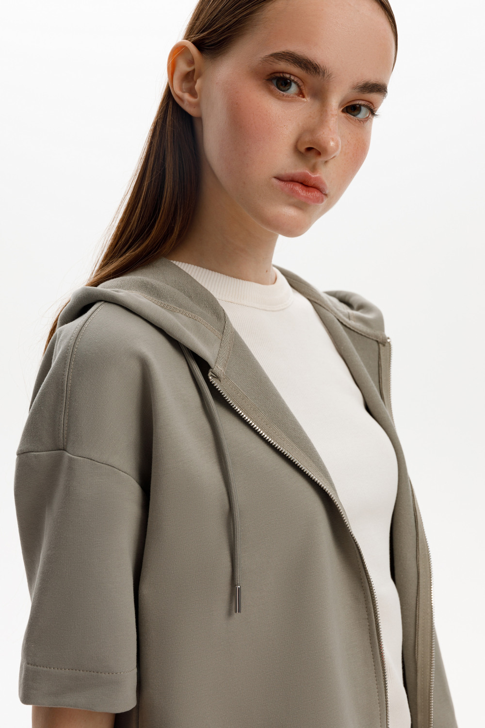 Толстовка из мягкого футера с коротким рукавом