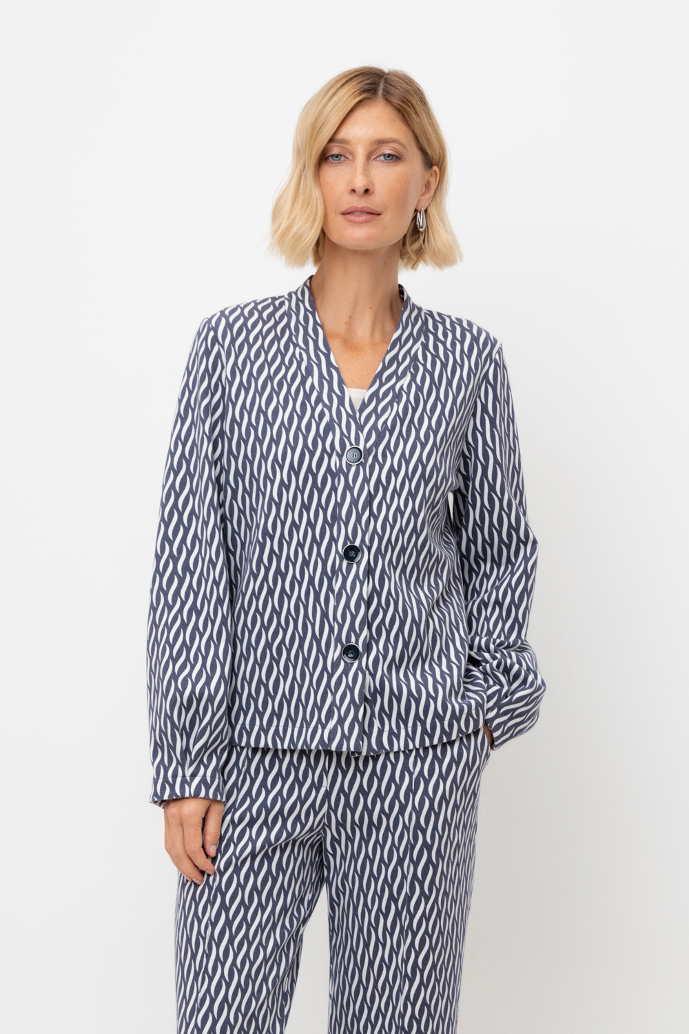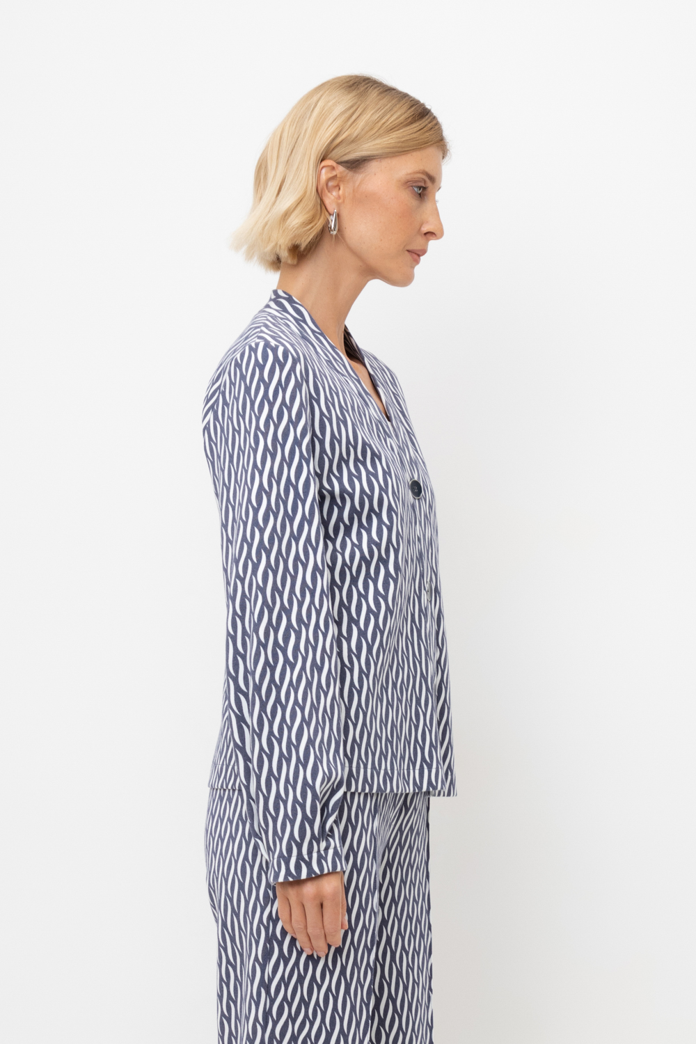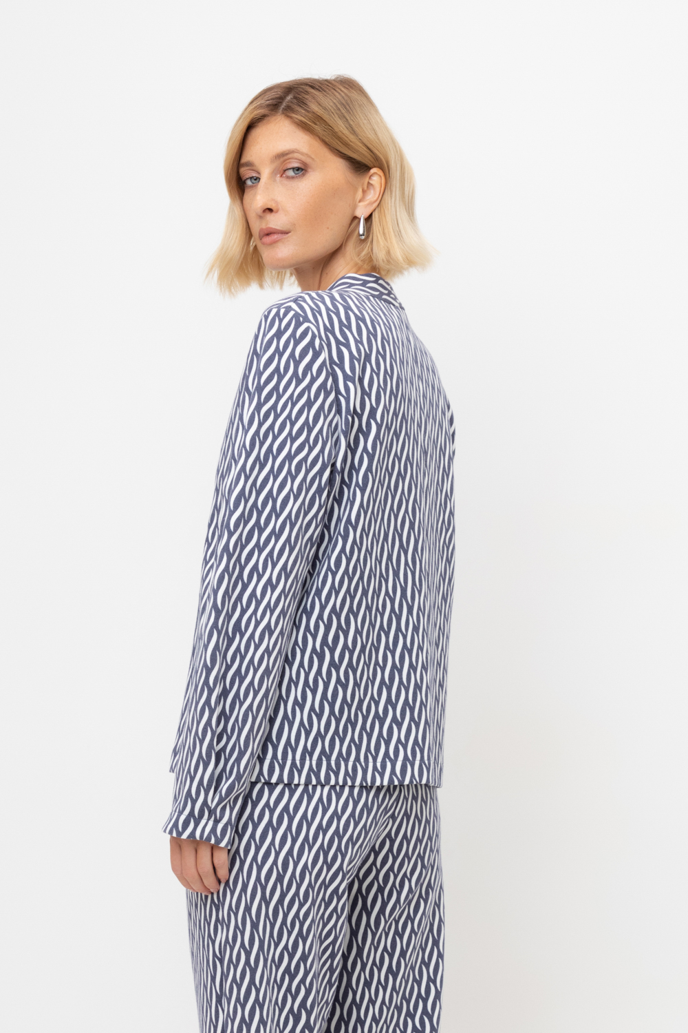 Жакет прилегающего силуэта из премиального трикотажа DOUBLE FACE. За счет фактуры переплетения и специальных обработок сохраняет силуэт и форму. Хлопок в составе добавляет комфорта при носке. В сочетании с брюками из этой коллекции вы создадите элегантный образ для летних дней.
