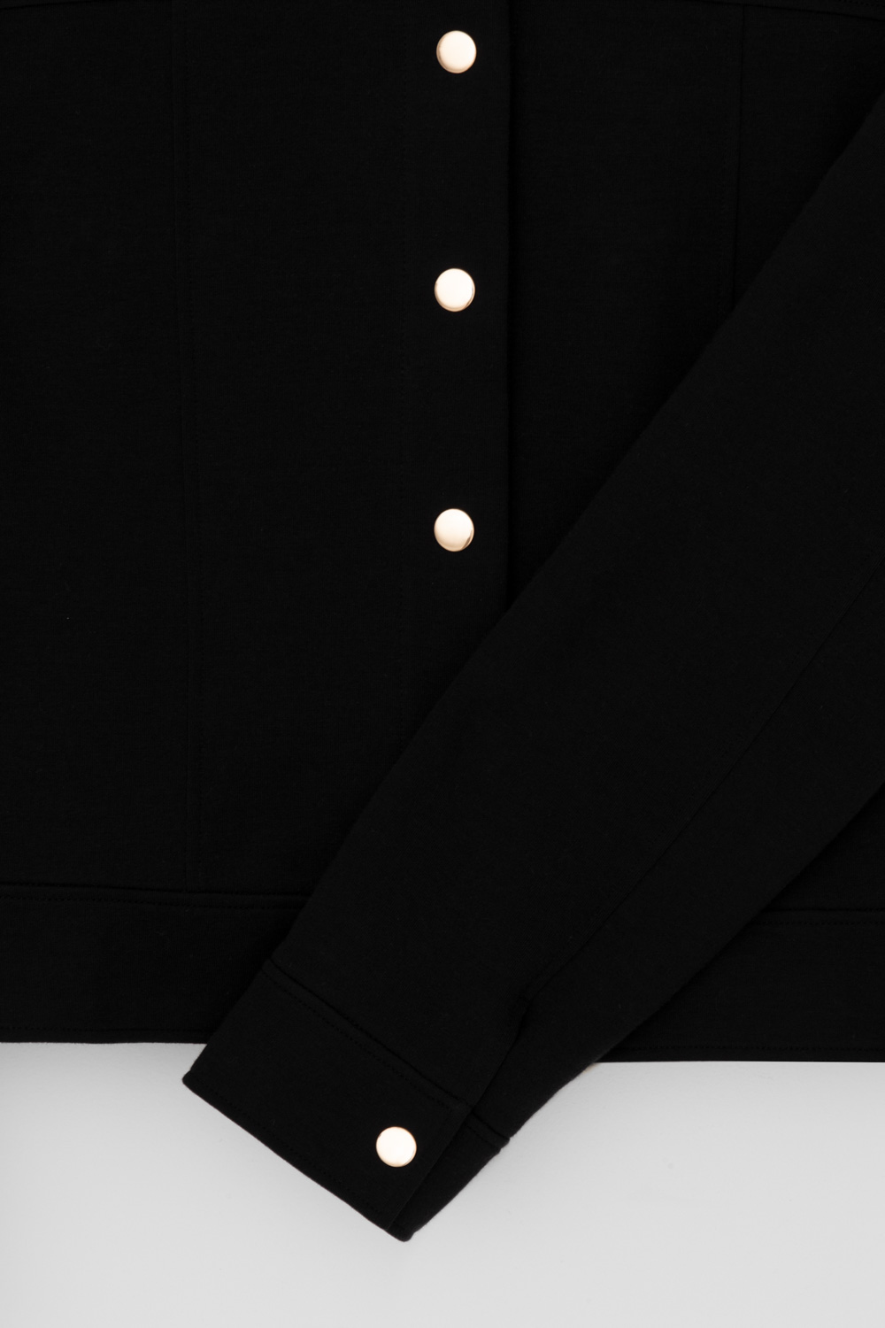 Укорочённый жакет, изготовленный из премиального трикотажного полотна DOUBLE FACE с добавлением спандекса. За счет фактуры переплетения и специальных обработок сохраняет силуэт и форму, что позволяет сочетать его как с юбкой, так и с брюками. Хлопок в составе добавит комфорта при носке.