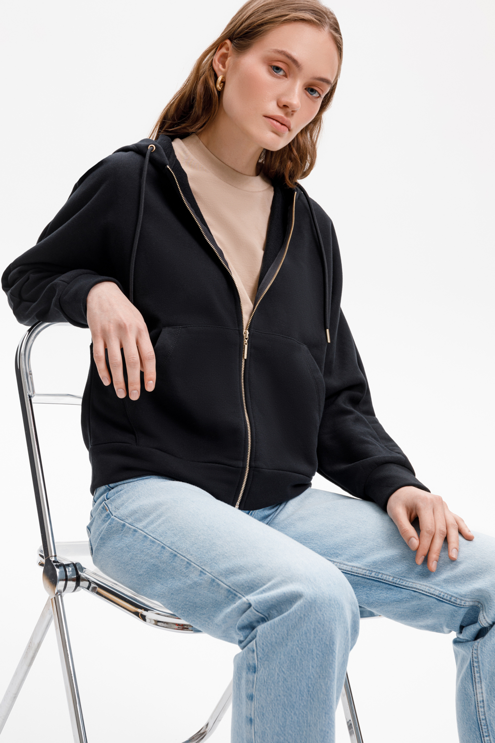 Объемная толстовка на молнии из мягкого трикотажного футера. Наличие специальных обработок полотна придало изделию мягкость и шелковистость.