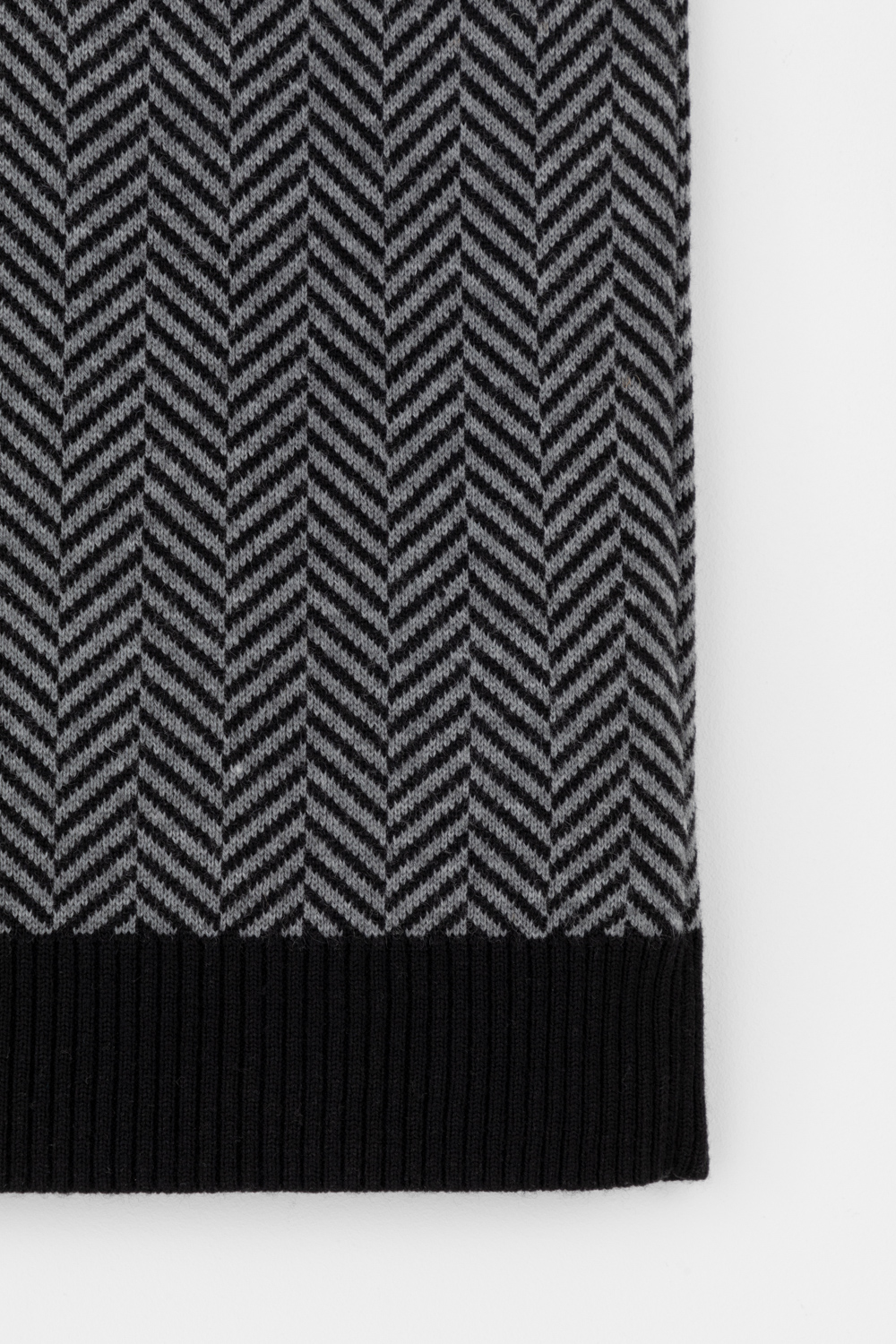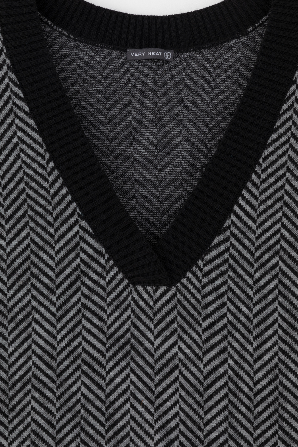 Вязаный жилет с элегантным глубоким вырезом. В составе 50% шерсти и 50% акрила. Шерсть в составе сохраняет тепло, а акрил делает изделие мягким и объемным.