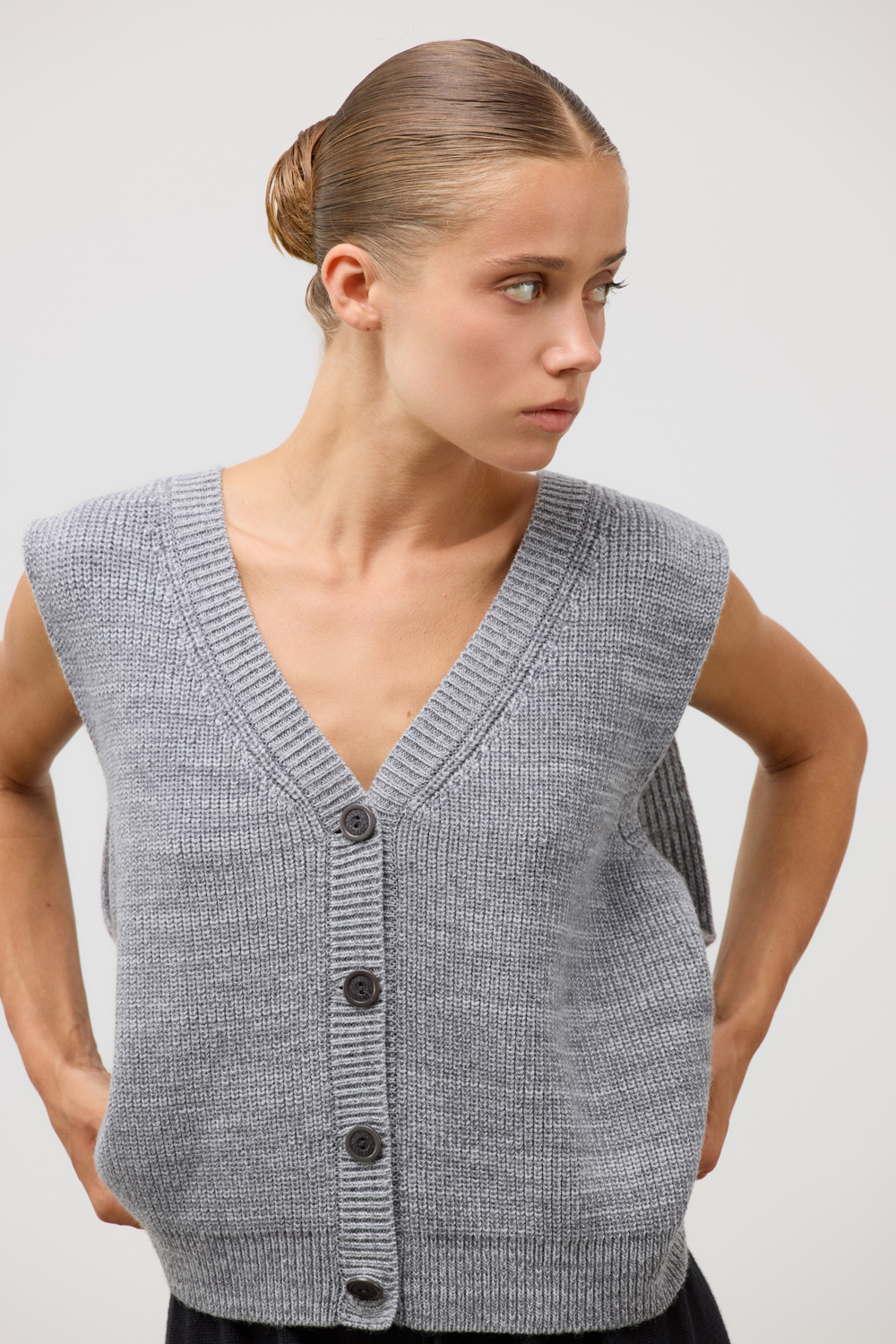 Жилет, созданный из высококачественных материалов, представляет собой гармоничное сочетание натуральной шерсти и современного акрила, что обеспечивает идеальный баланс между теплотой, мягкостью и долговечностью. Такой состав делает изделие легким, но при этом удивительно теплым. Каждая деталь тщательно продумана: аккуратные швы и прочные пуговицы придают жилету уникальность.