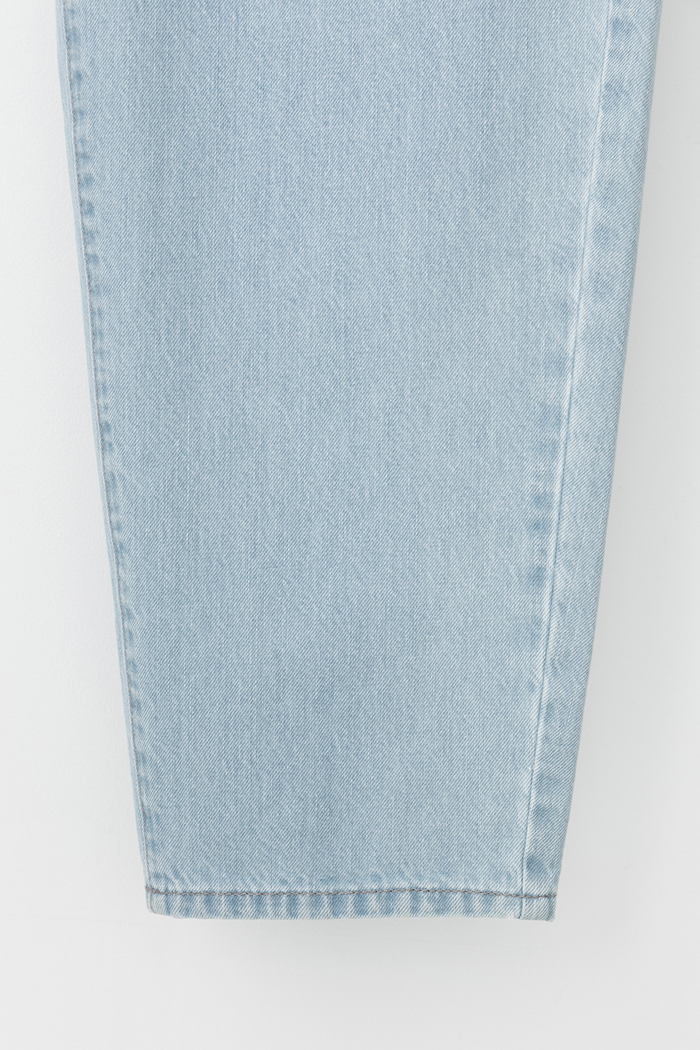 Женские джинсы из 100% хлопка свободного кроя, зауженные книзу, с эффектом выбеленности и завышенной линией талии. Модель с классическими 5 карманами и фирменной нашивкой из эко кожи Very Neat.