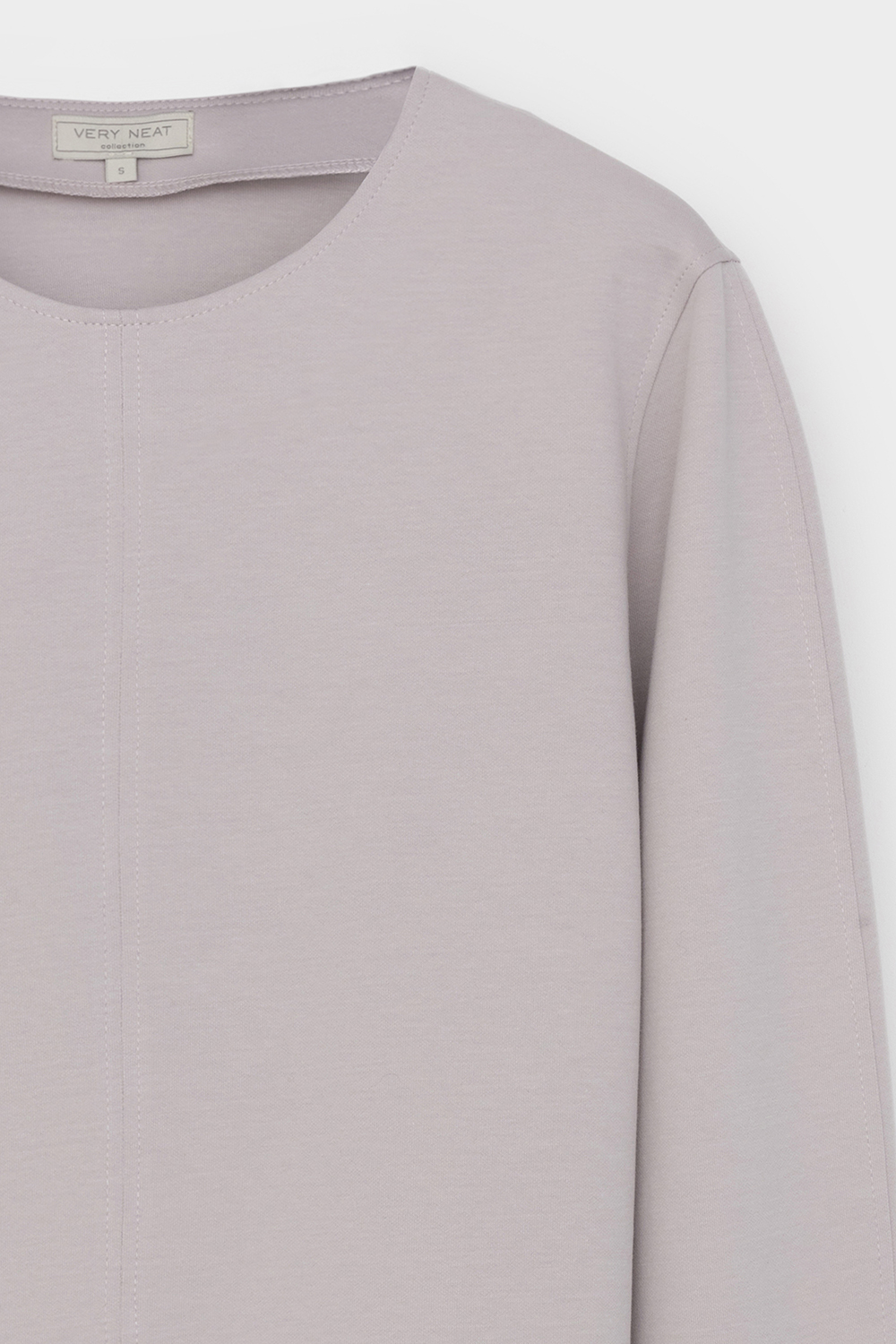 Модель имеет классический круглый вырез и прямой крой, что делает ее универсальной. Рельефный шов, расположенный по центру, добавляет изделию оригинальности.