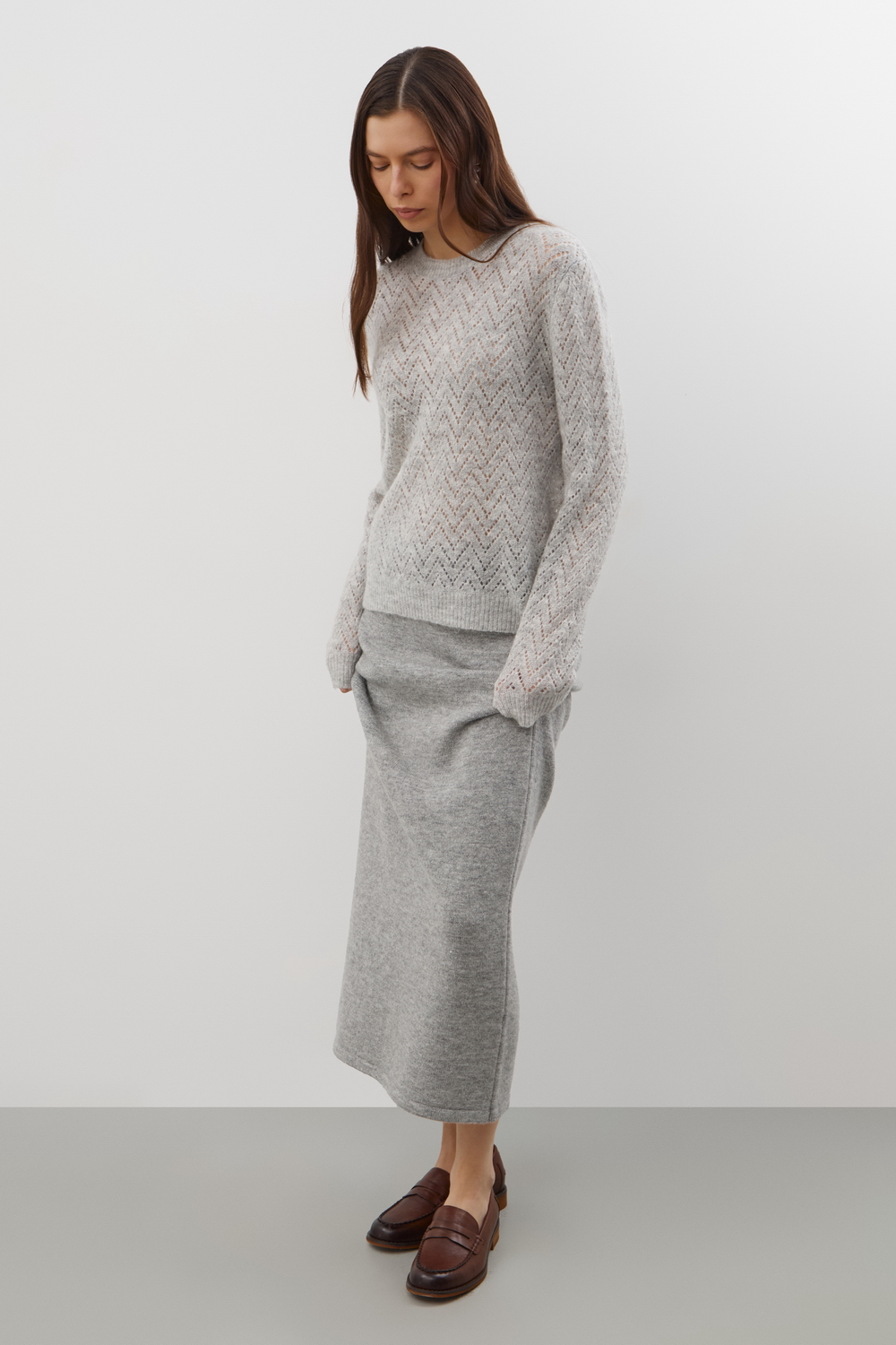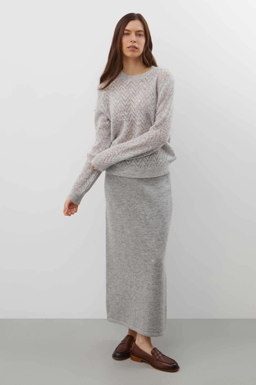 Ажурный джемпер из шерсти ангоры. Изделие идеально садится по фигуре, гарантирует мягкость прикосновения и сохраняет безупречную форму даже после длительной носки.