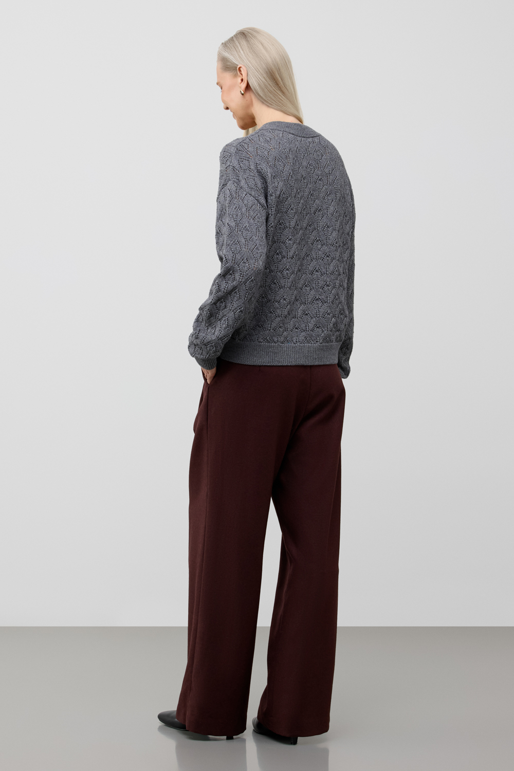 Мягкий вязаный джемпер с V-вырезом из премиальной пряжи, созданный с использованием инновационной технологии смешанного волокна. Деликатное сочетание шерсти и акрила обеспечивает непревзойденный комфорт: изделие нежно облегает фигуру, гарантирует мягкость прикосновения и сохраняет безупречную форму.