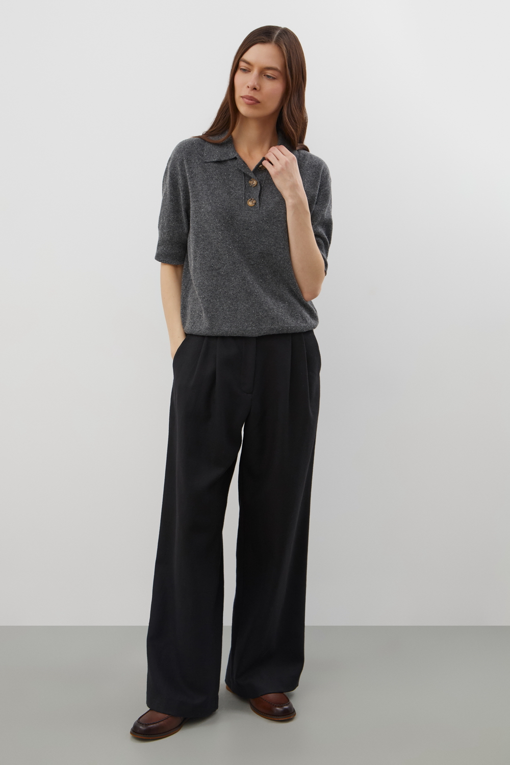 Мягкий джемер-поло из шерсти мериноса. Изысканное сочетание  шелка и шерсти обеспечивает непревзойденный комфорт: изделие идеально садится по фигуре, гарантирует мягкость прикосновения и сохраняет безупречную форму даже после длительной носки.