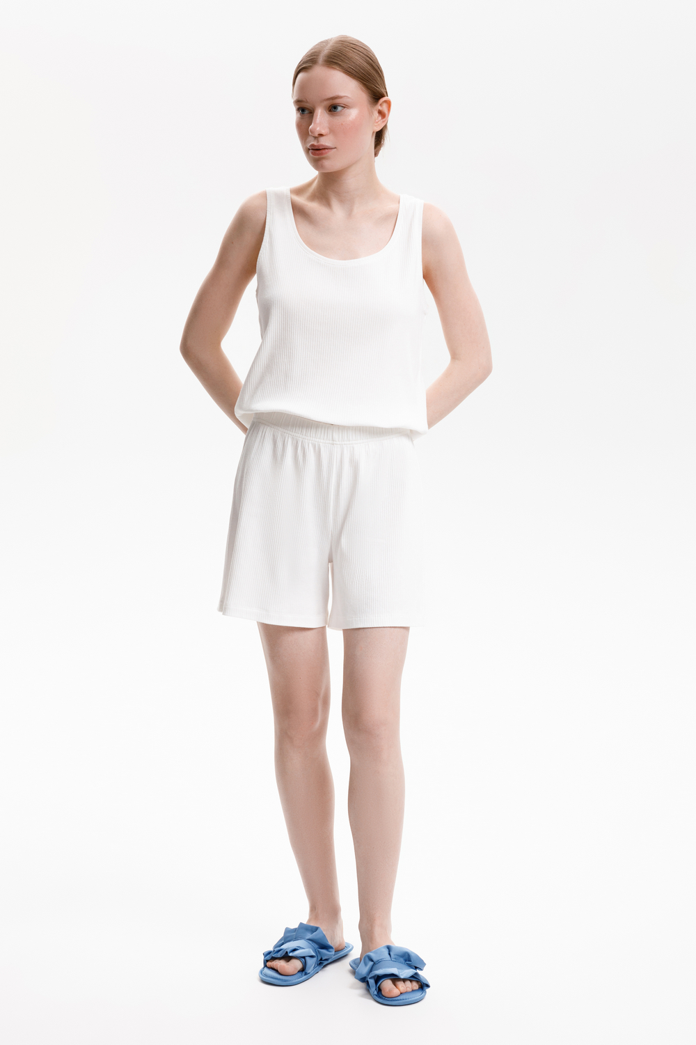 Комплект топ и шорты из эластичного полотна в рубчик