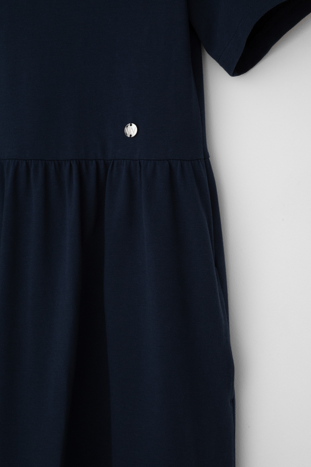 Летнее платье в стиле поло выполненно из премиального трикотажа пике. Свободный силуэт, наличие боковых карманов придают изделию спортивный и одновременно романтический стиль. 100% хлопок в составе обеспечивает комфорт в жаркую погоду. Глубокий чернильный цвет является основой всех морских коллекций.