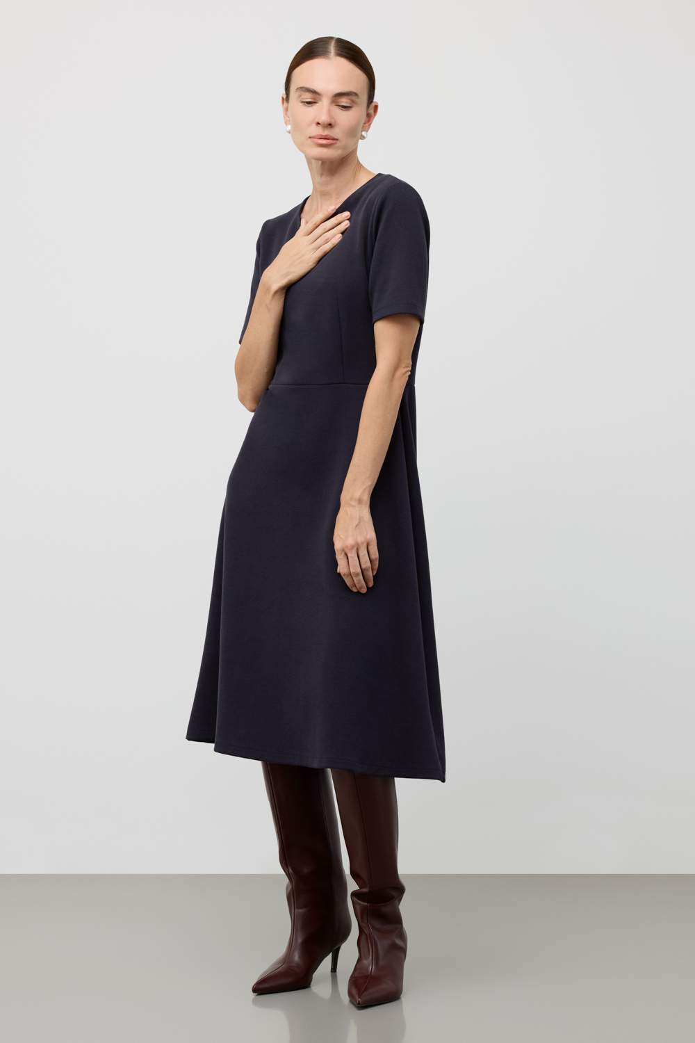 Современный фасон и лаконичный дизайн делают платье универсальным решением для различных мероприятий — от деловых встреч до непринужденных прогулок по городу.