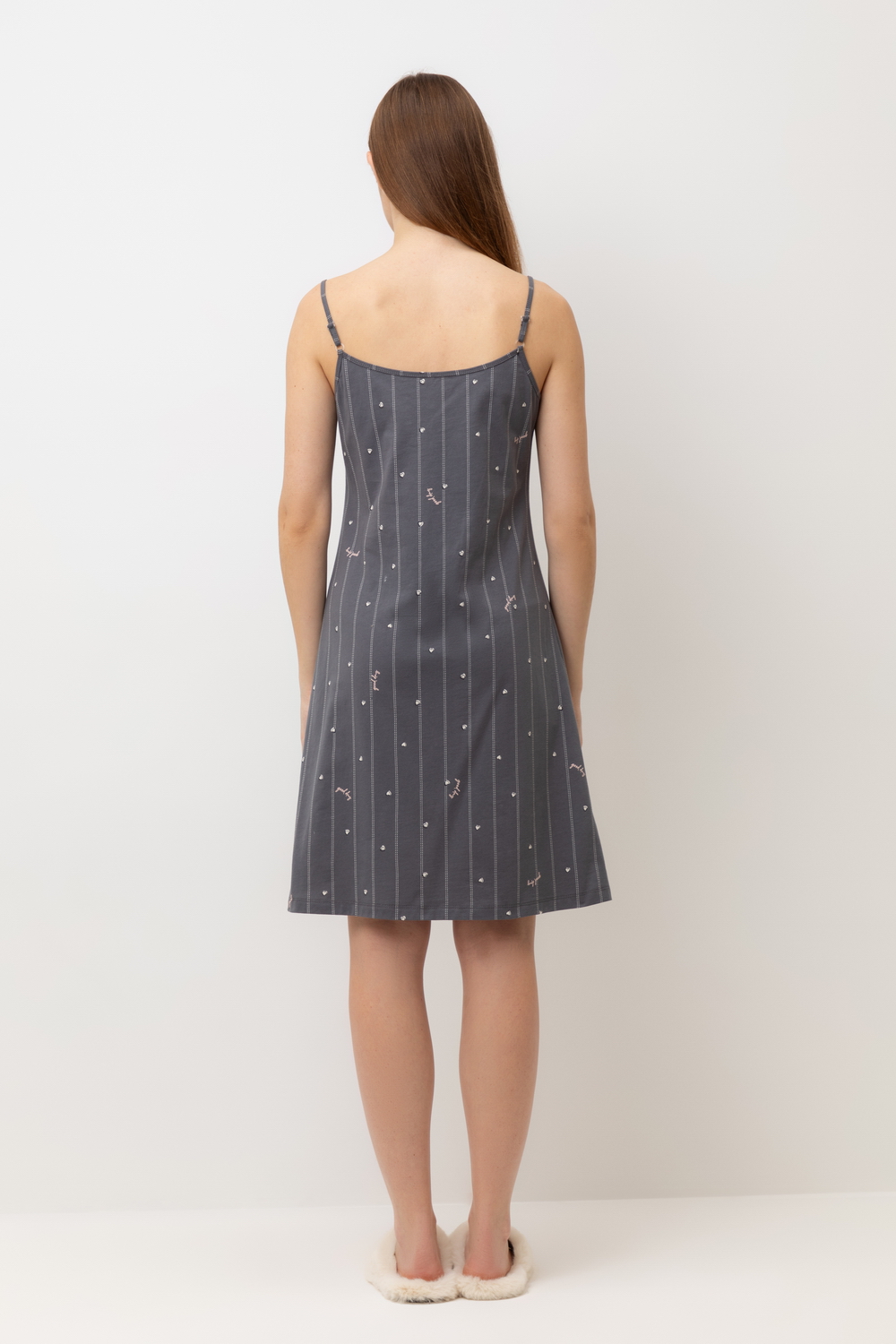 Сорочка из 100% хлопка. Регулируемые бретели позволяют подстроить их под ваши предпочтения, а удобный крой добавляет комфорта во время сна.