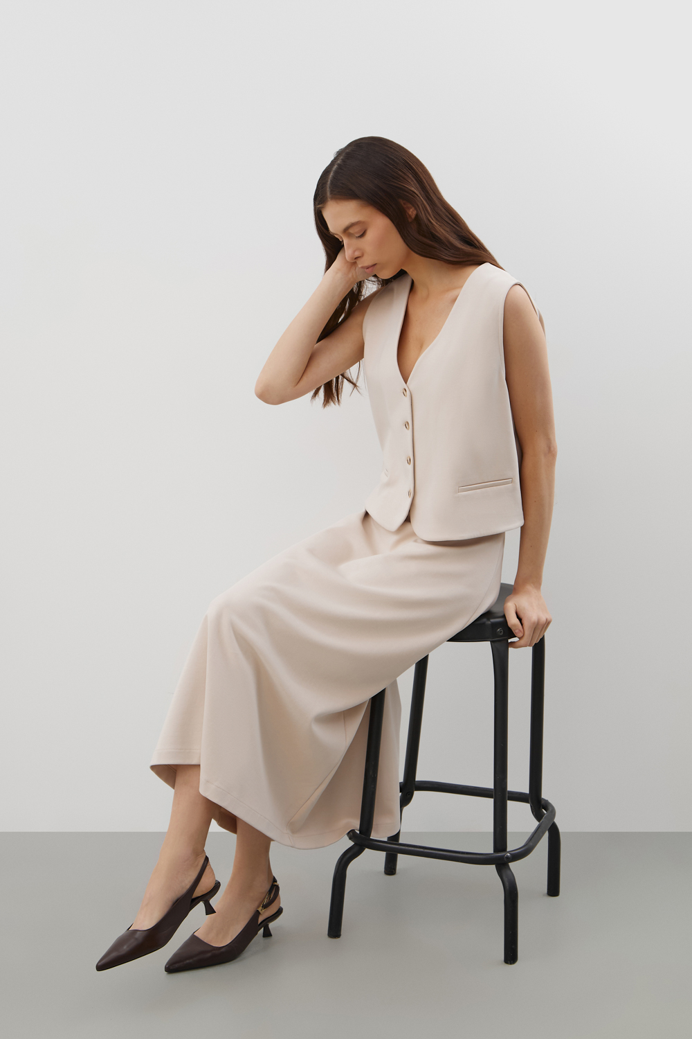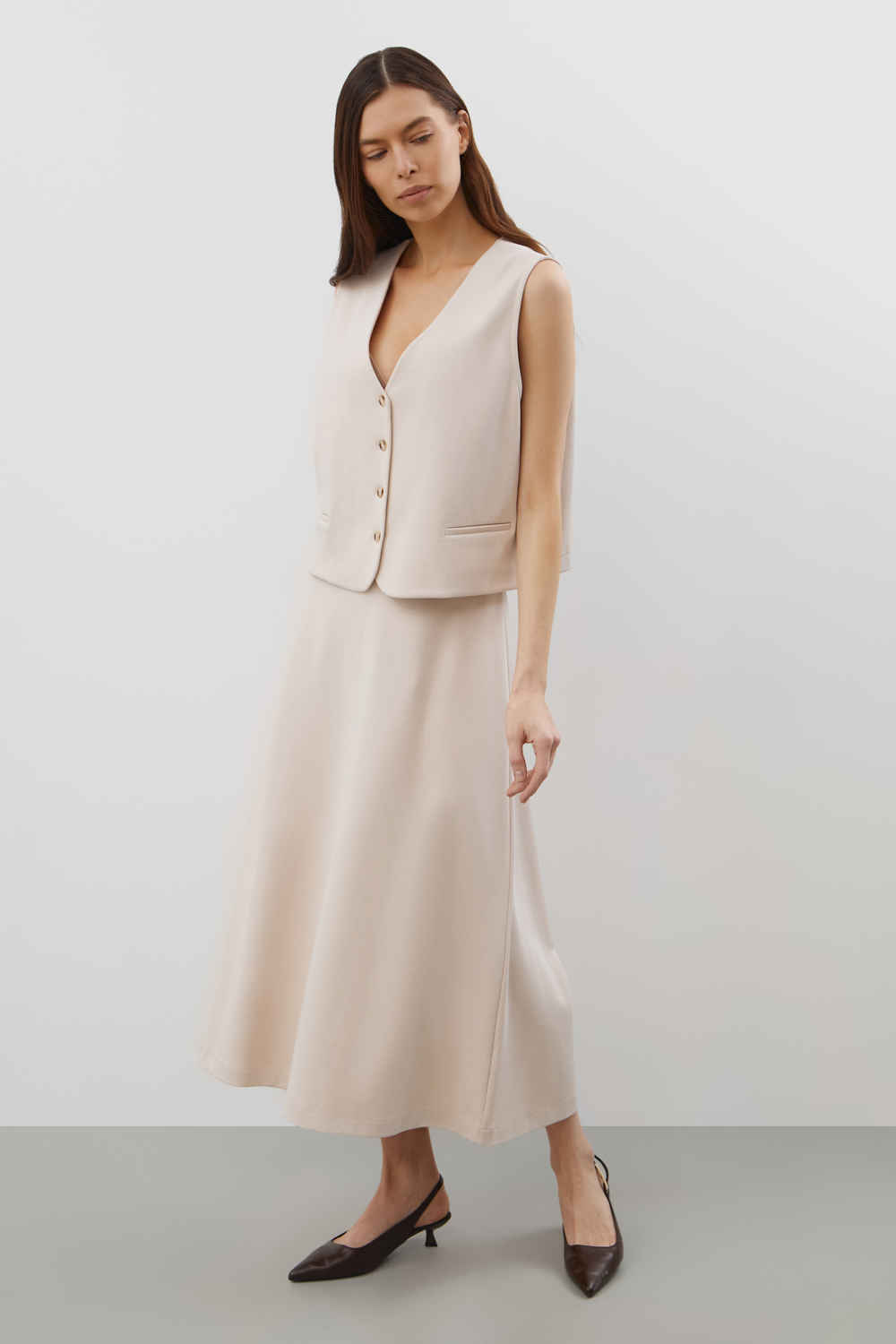 Юбка из  премиального  трикотажного полотна мягко расширяется к низу, создавая изящный силуэт и подчёркивая талию.