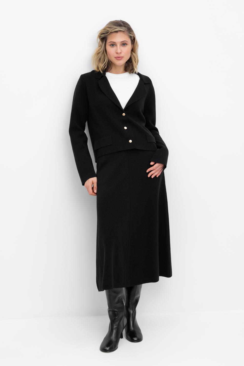 Вязаная юбка из премиальной пряжи, созданная с использованием инновационной технологии смешанного волокна. Деликатное сочетание шерсти и акрила обеспечивает непревзойденное ощущение мягкости, эластичность посадки и гарантированный комфорт при носке. Модель идеально адаптирована к телу, не создает дискомфорта и сохраняет безупречную форму.