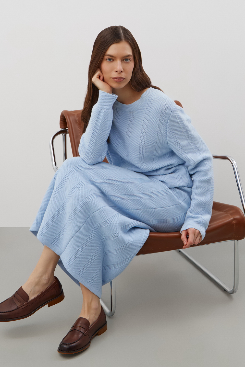 Эксклюзивная модель из высококачественной итальянской шерсти с добавлением кашемира и мериноса  — идеальное сочетание для безупречного комфорта и элегантности. Рельефная текстура подчеркивает утонченный вкус и делает эту юбку незаменимым элементом гардероба.