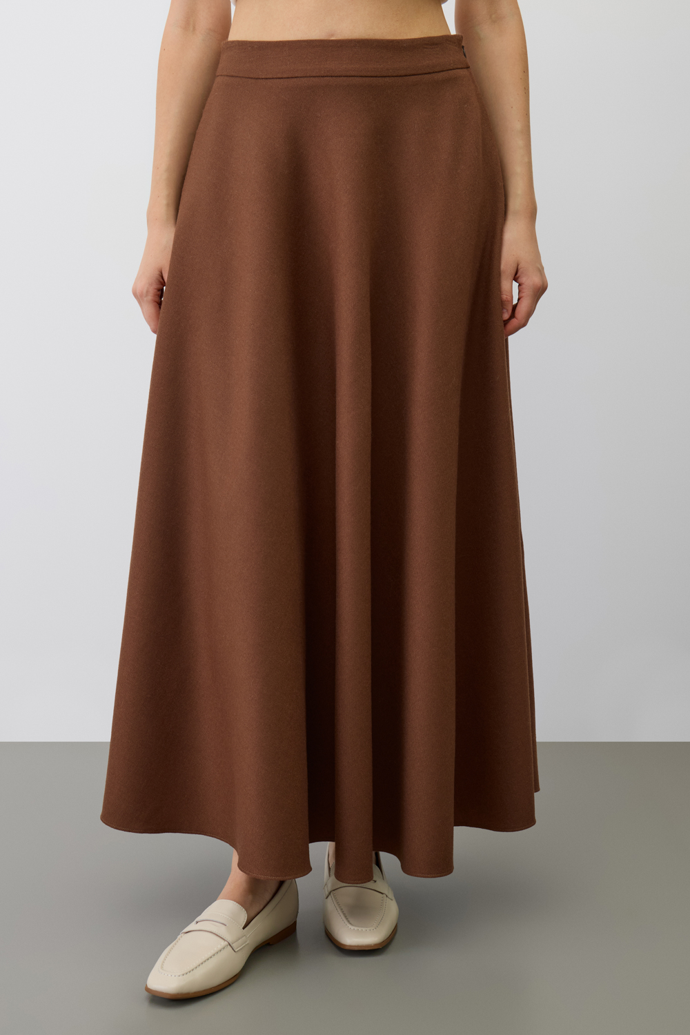 Натуральная шерсть не только приятна на ощупь, но и обладает отличными теплоизоляционными характеристиками. Крой в стиле полусолнце мягко обрисовывает силуэт, акцентируя внимание на талии.