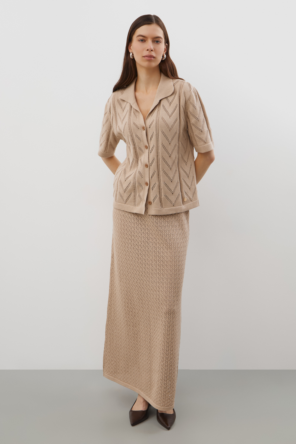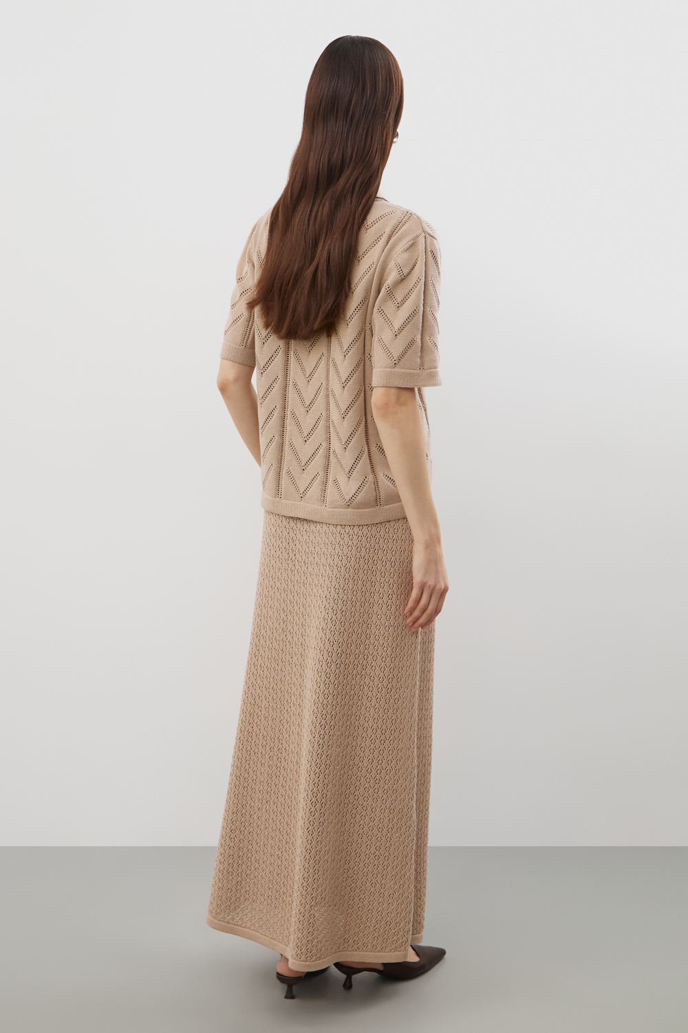 Ажурная юбка из хлопковой пряжи отражает классический стиль. Дополняет изделие внутренний невесомый подклад из премиального бифлекса телесного цвета. Юбка прошла дополнительную обработку по итальянской технологии, это гарантирует минимальную усадку во время носки. Акрил в составе не позволяет изделию пилинговаться.