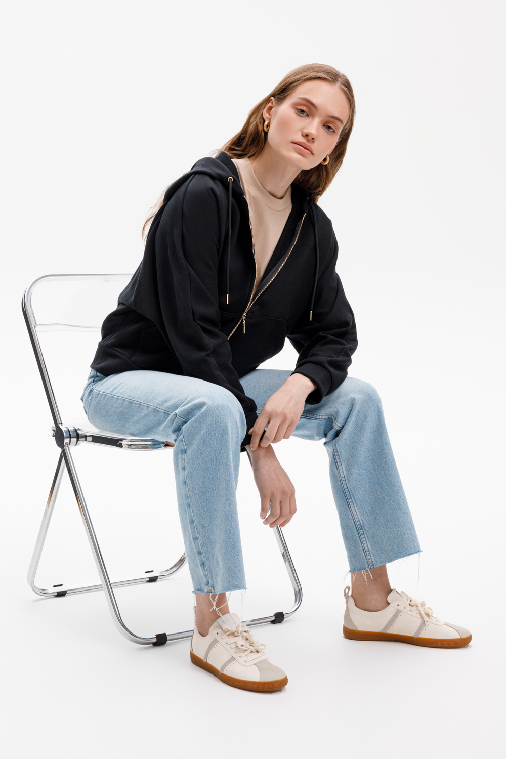 Объемная толстовка на молнии из мягкого трикотажного футера. Наличие специальных обработок полотна придало изделию мягкость и шелковистость.